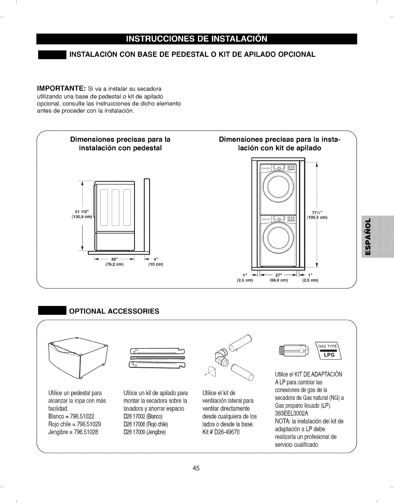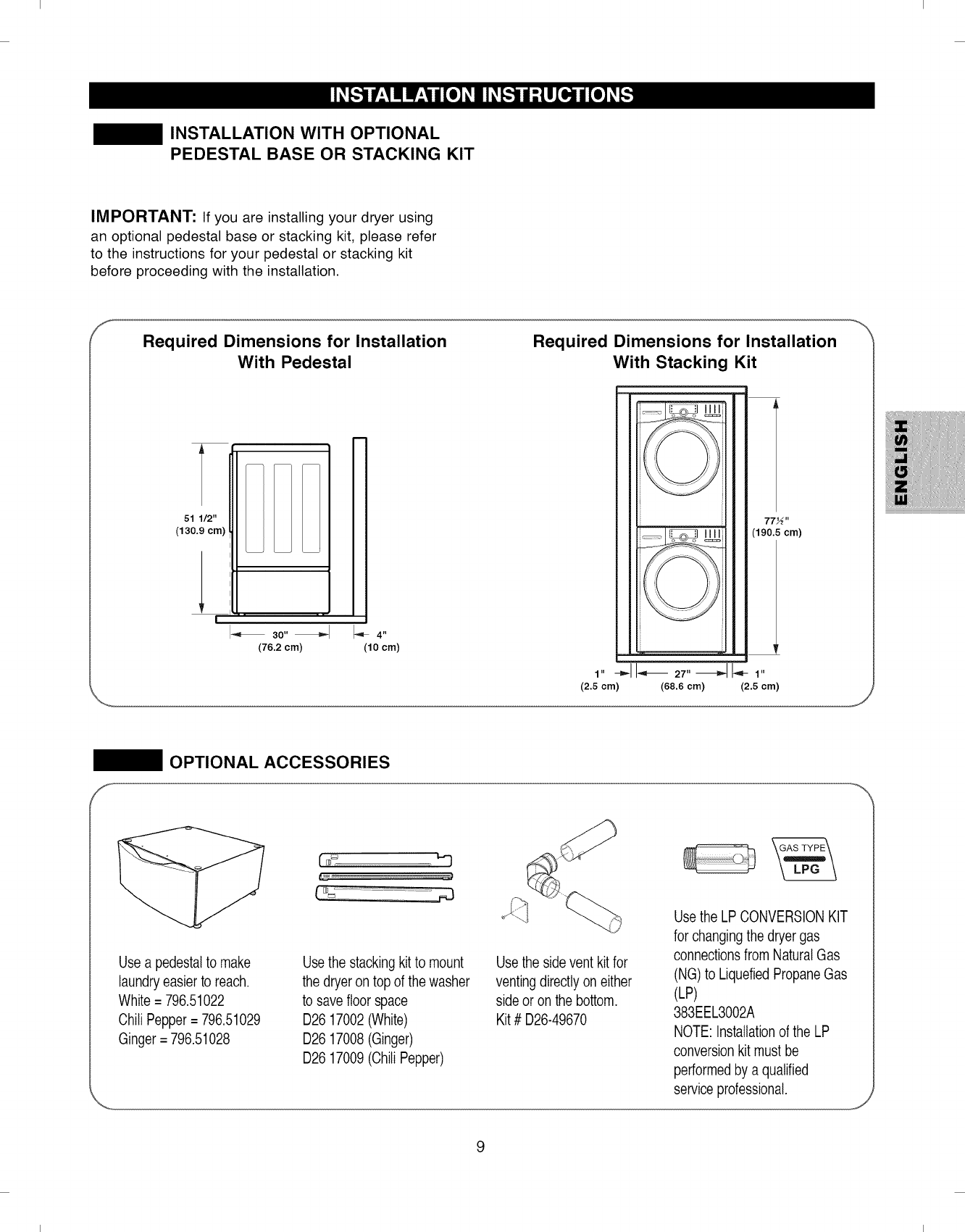 Installation with Optional Pedestal Base or Stacking Kit ..... 9