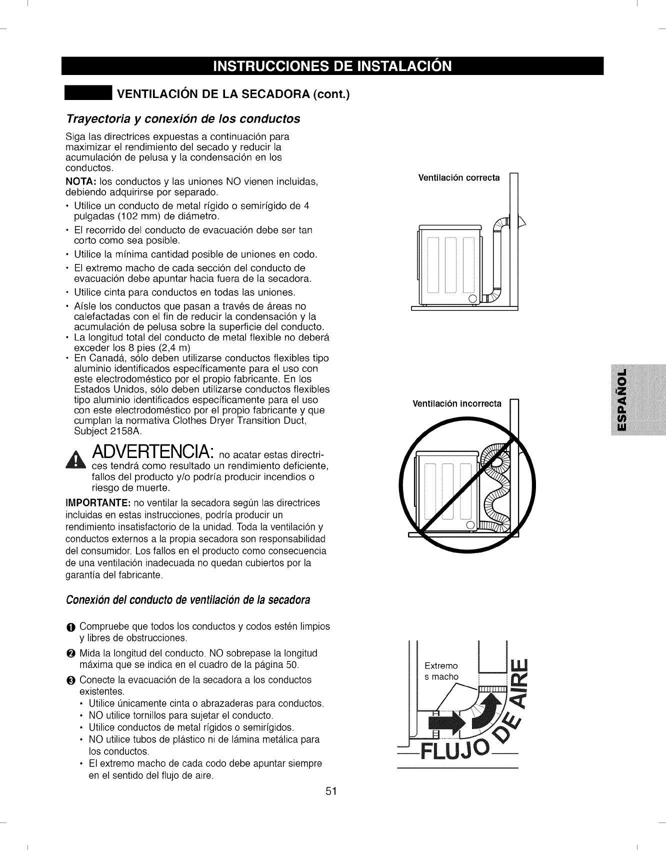 • No utilice conductos de pl#.stico o aluminio delgado.