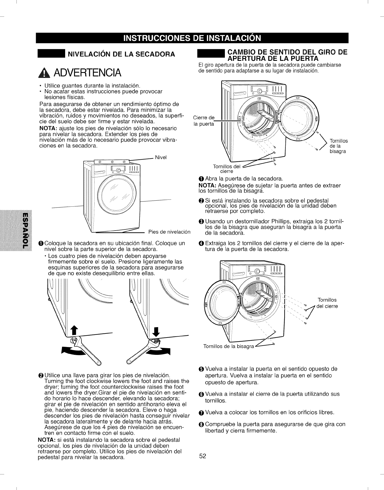• 1 llave de ajuste para ajustar los pies de nivetaci6n