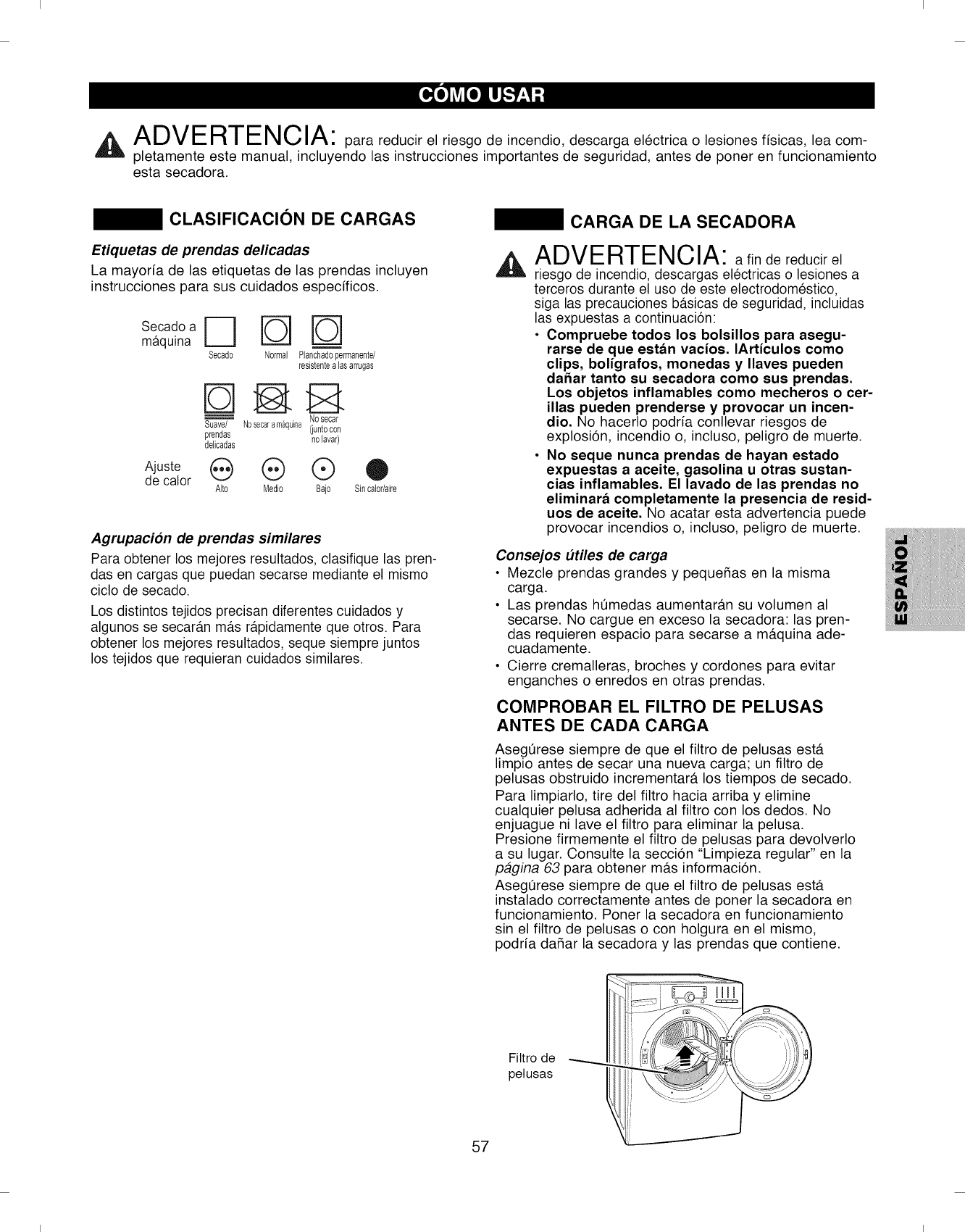 ventiladory fijeloa la basede la secadora,comose muestra.