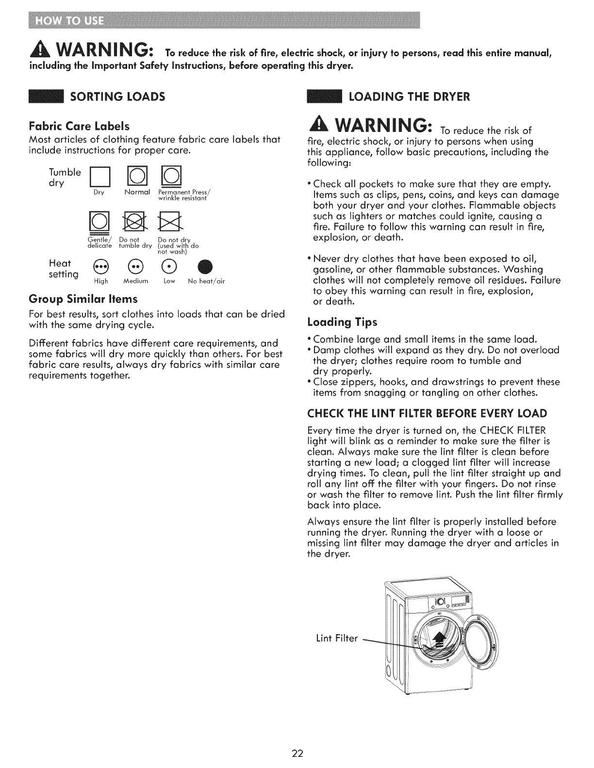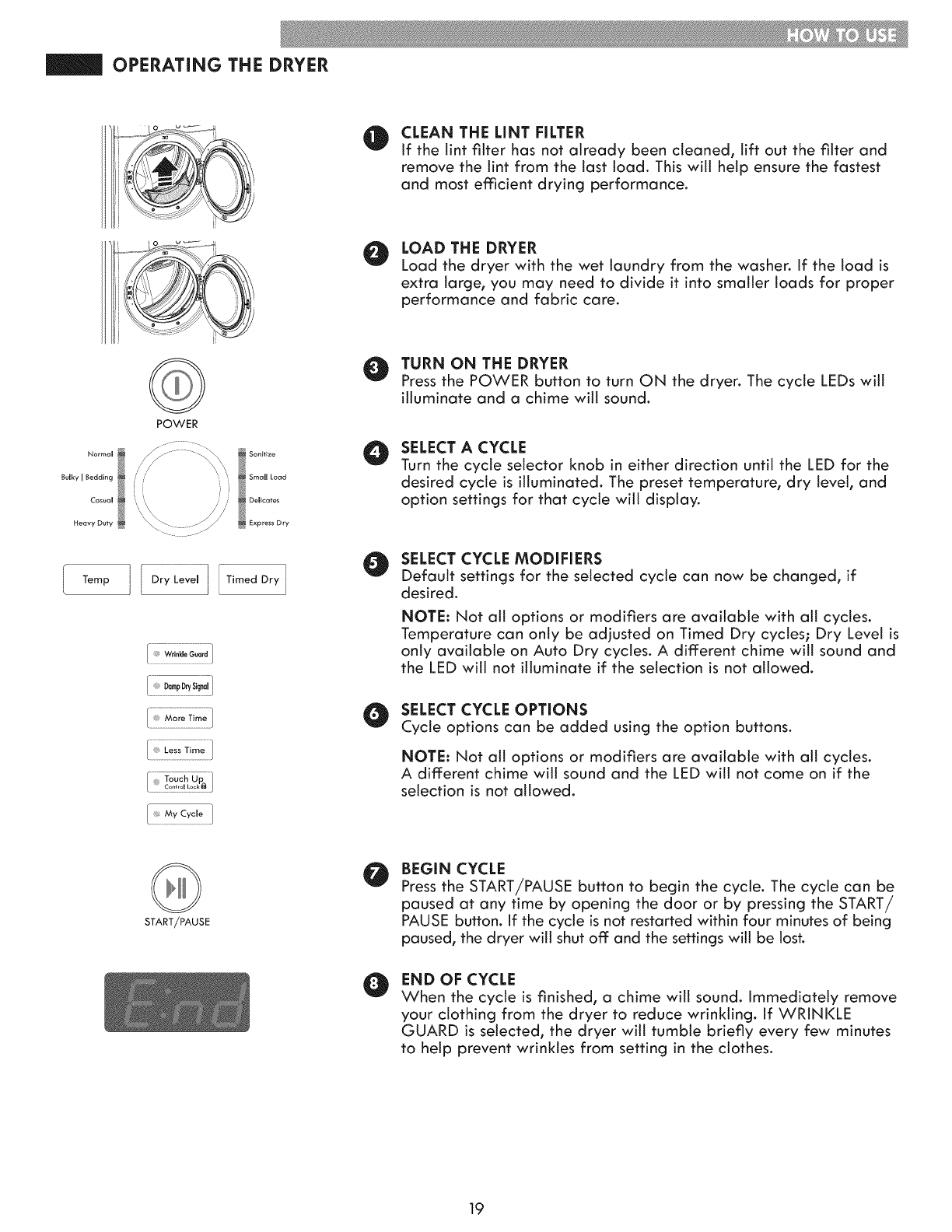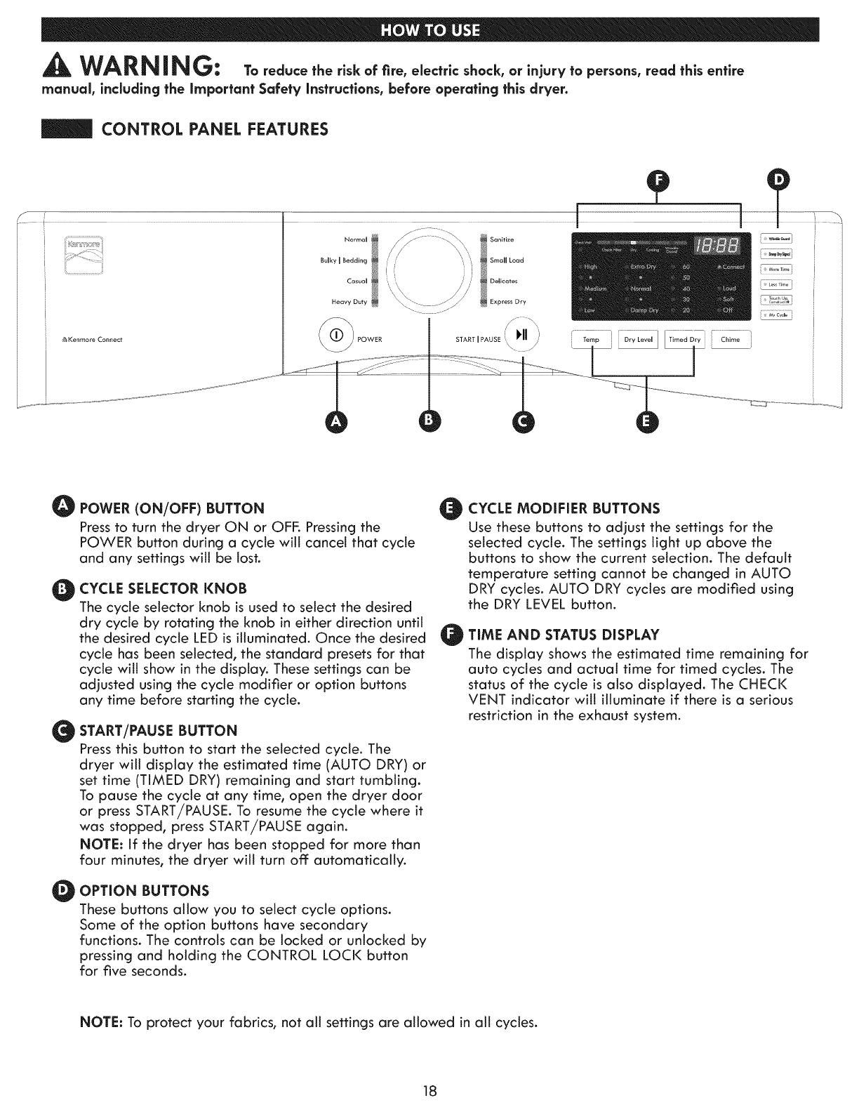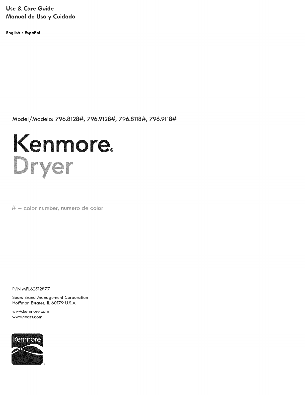 Kenmore 79681182310 User Manual DRYER Manuals And Guides 1309423L