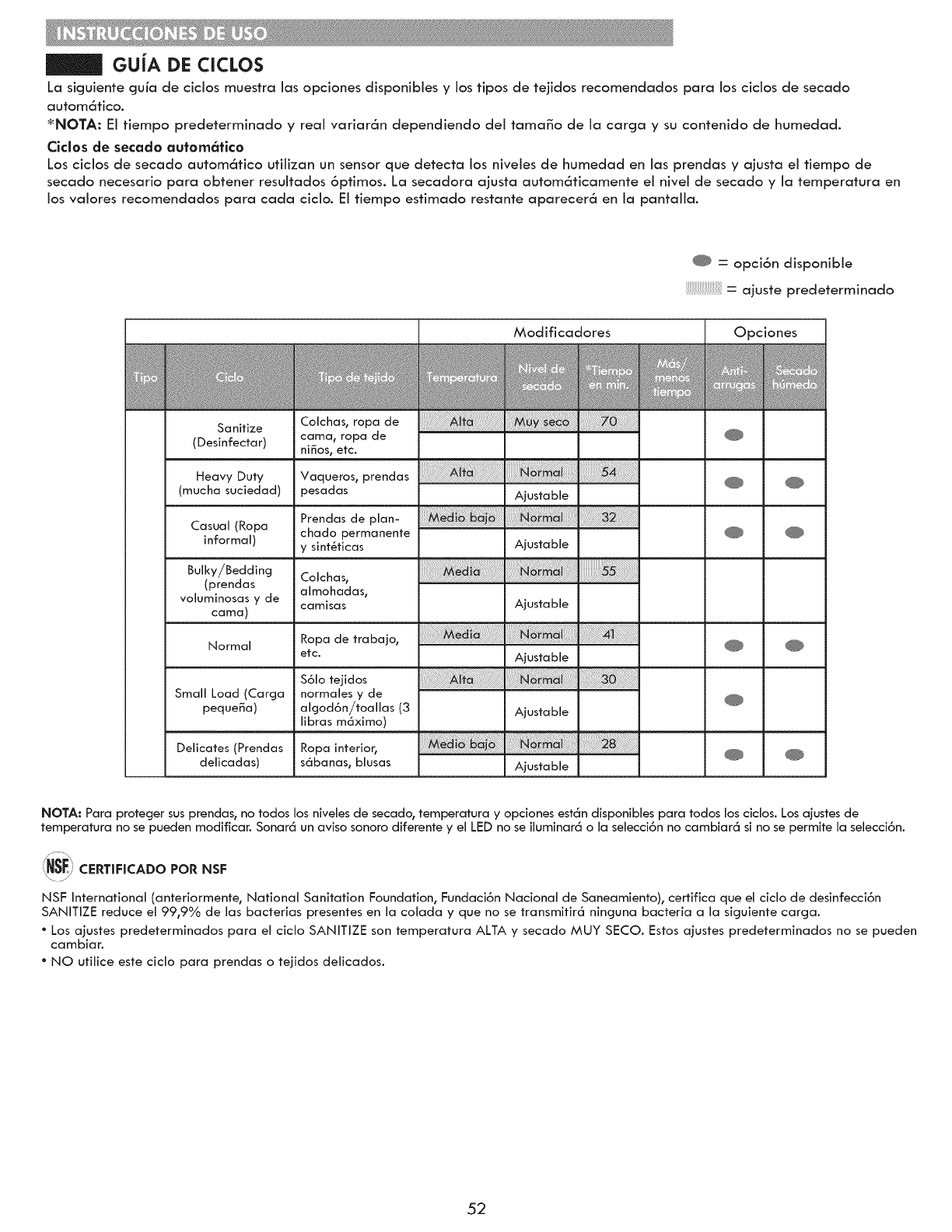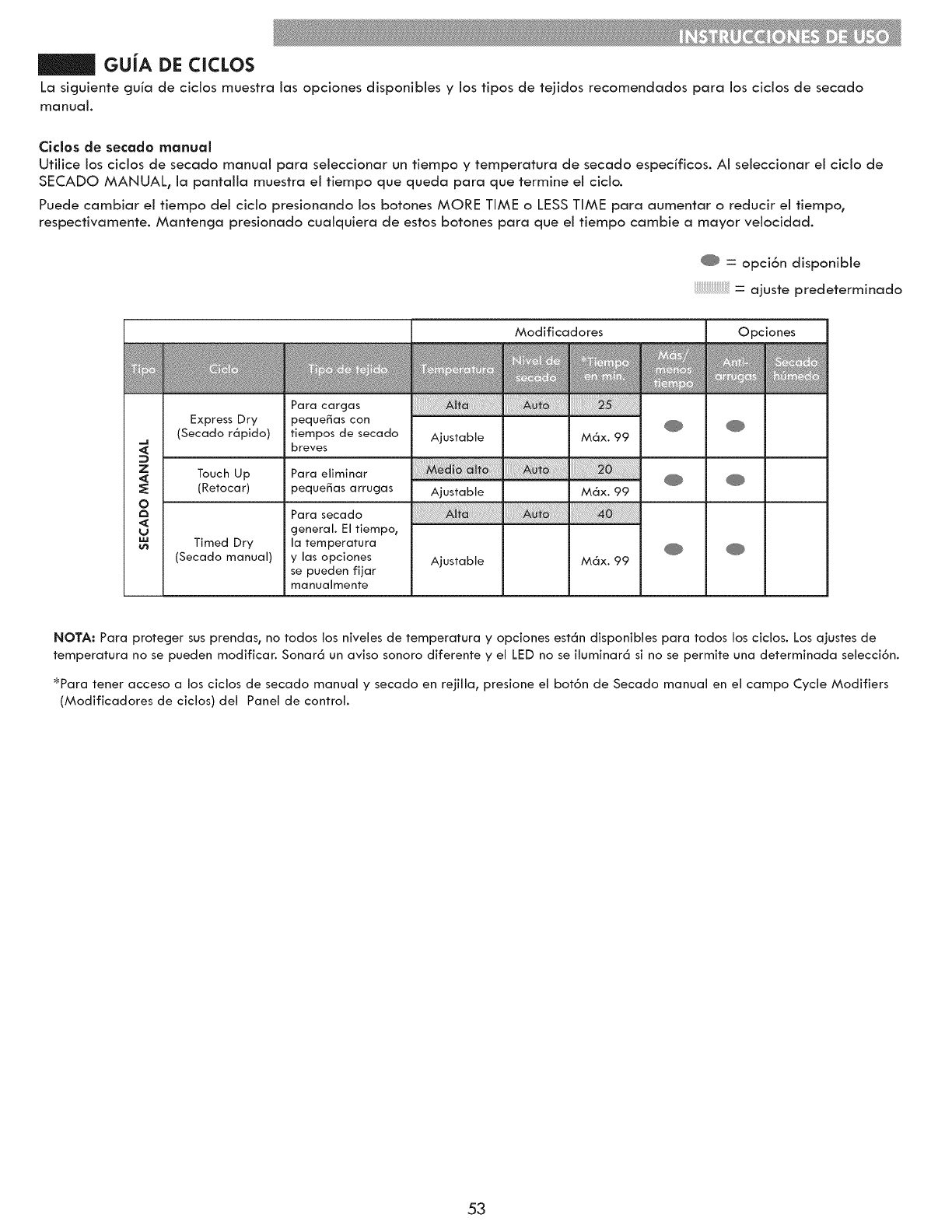 valores y utilice tiempos de secado m6s cortos o ciclos