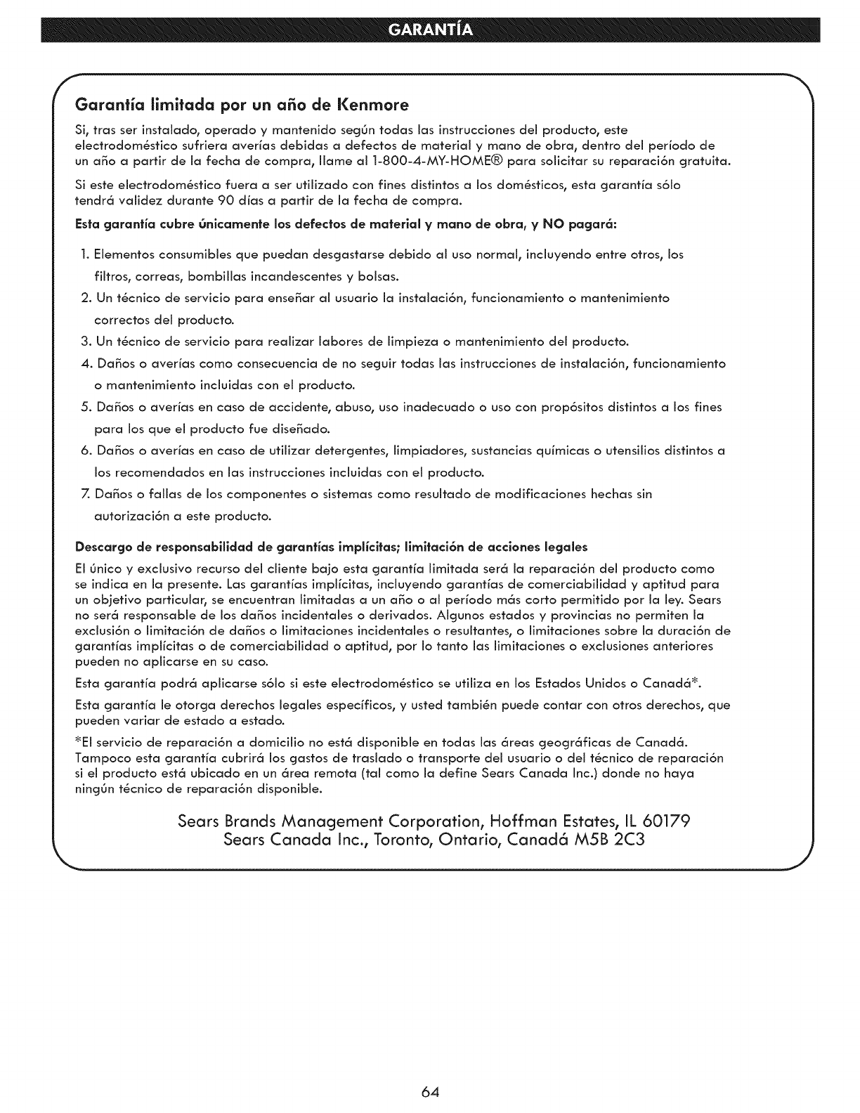 Esta cjaranfia podr6 aplicarse s61o si este electrodom(_stico se utiliza en los Estados Unidos o Canad6 _.