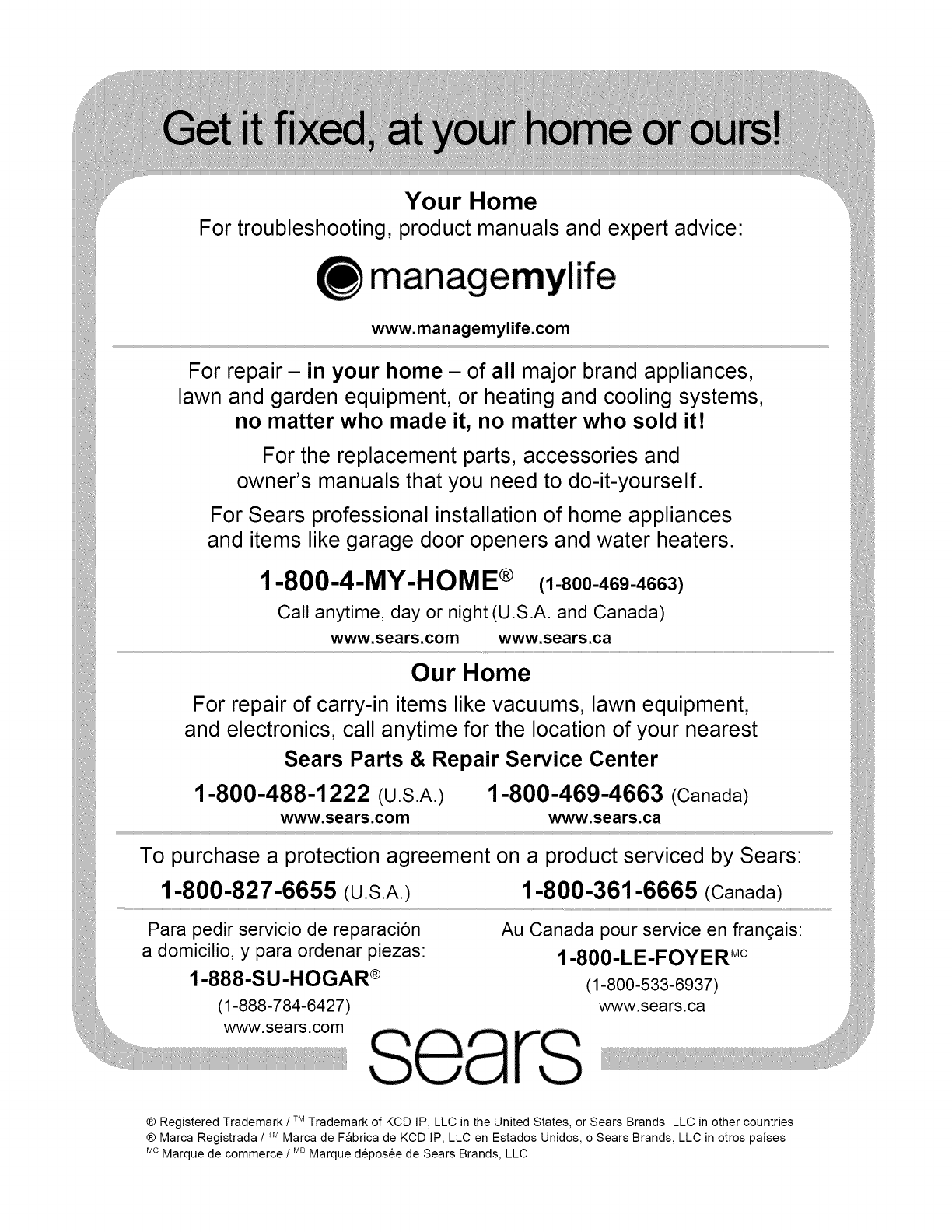 ® Registered Trademark /TMTrademark of KCD IP, LLC in the United States, or Sears Brands, LLC in other countries