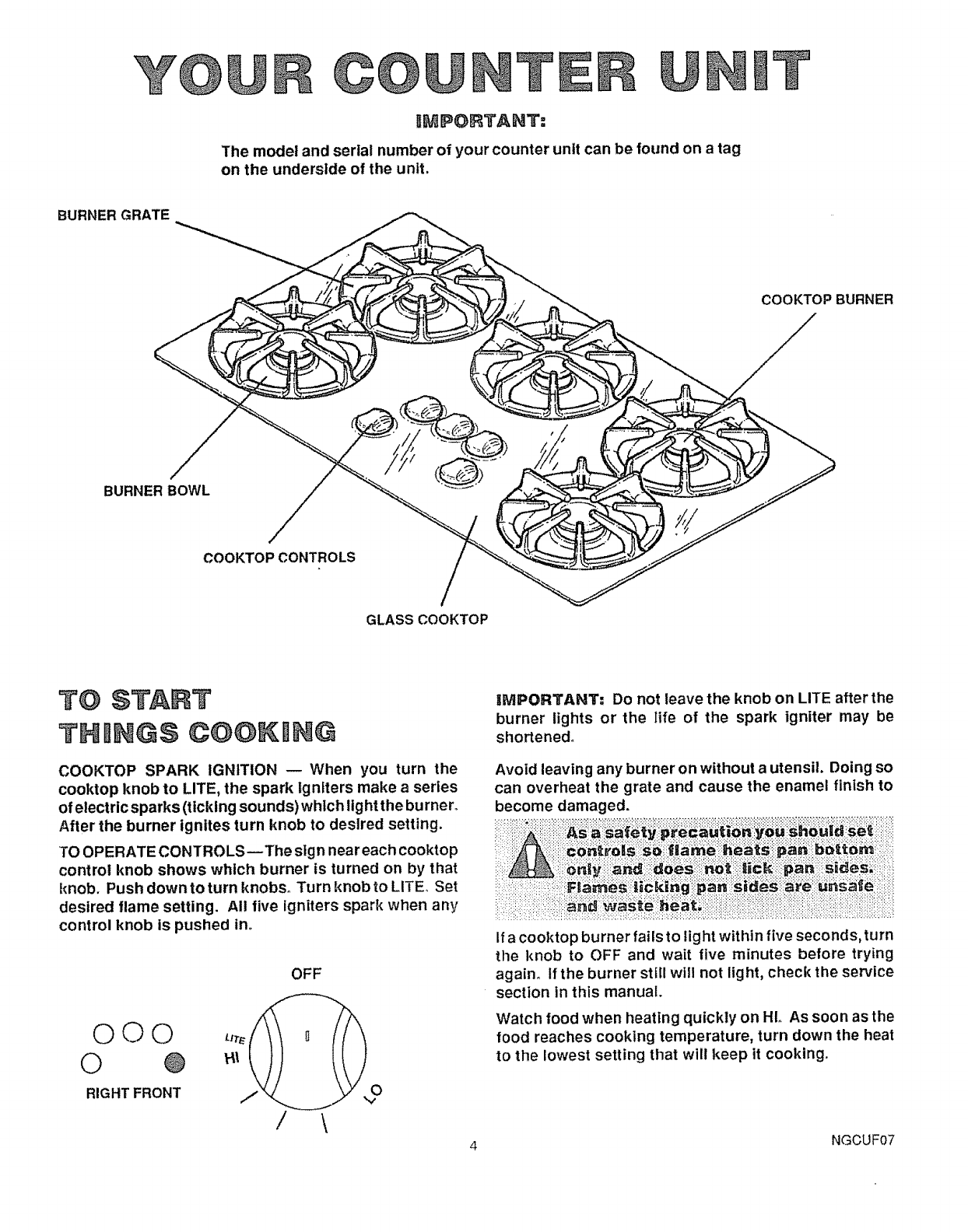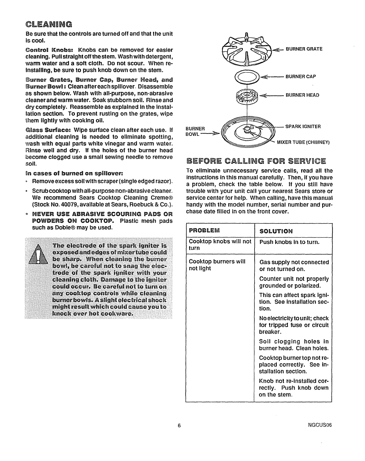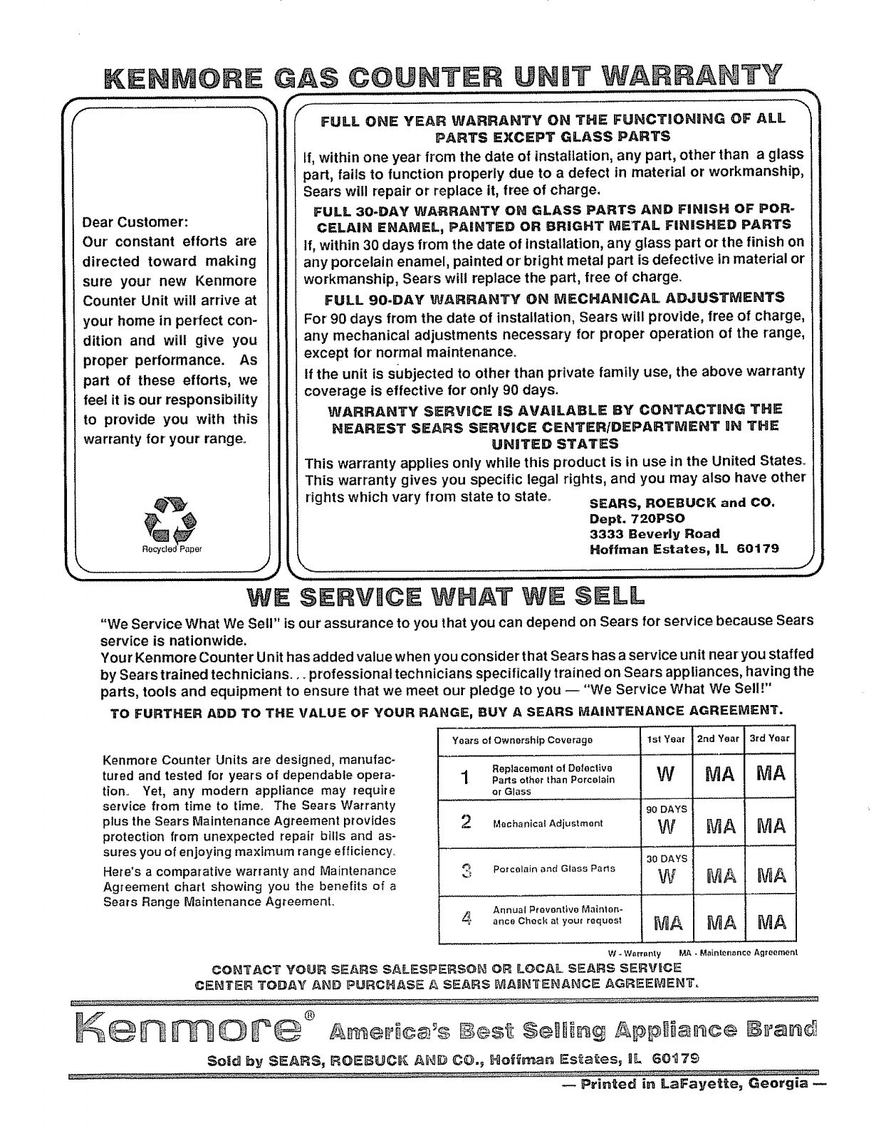KENMORE Counter Unit, Gas Manual L0901623 KENMORE Counter Unit, Gas Owner's Manual, KENMORE Counter Unit, Gas installation guides