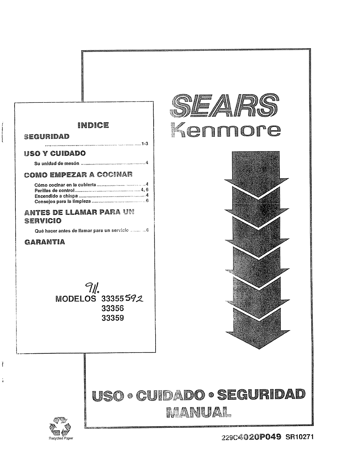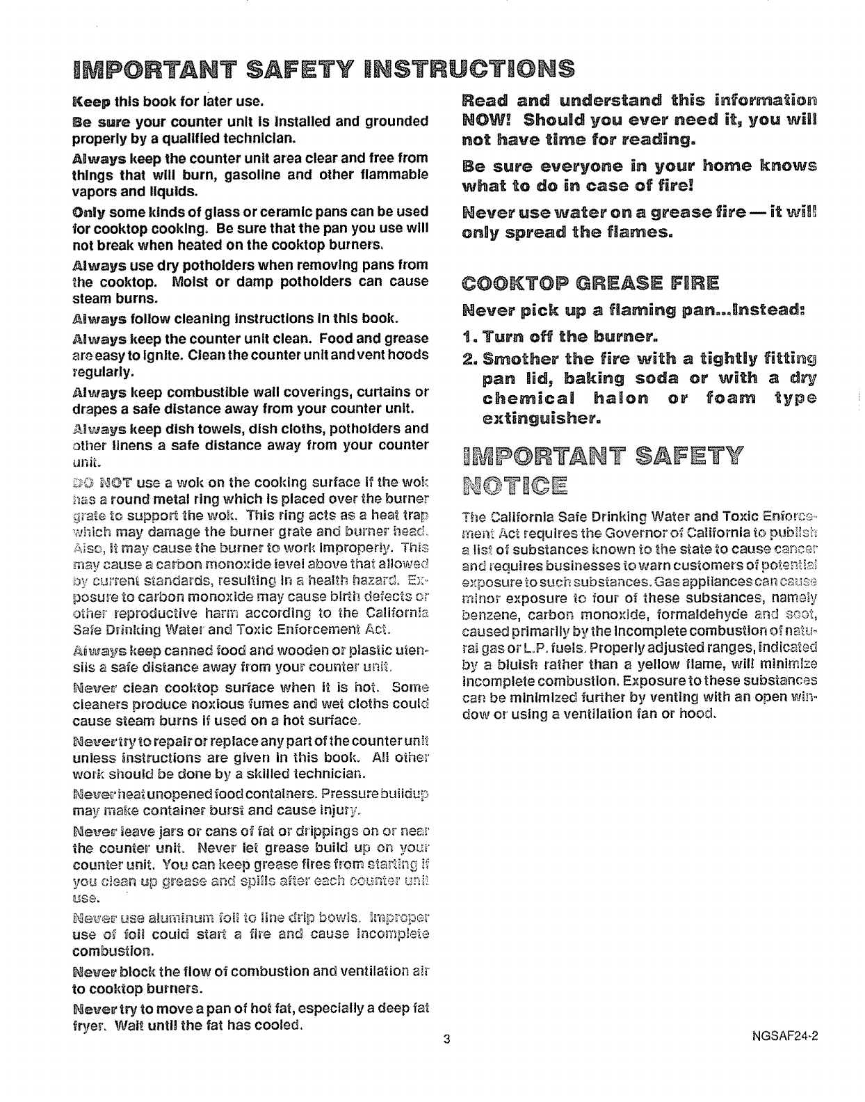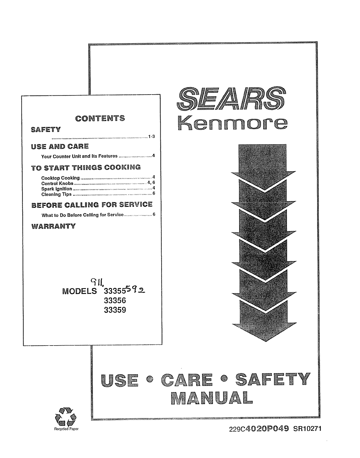 KENMORE Counter Unit, Gas Manual L0901623 KENMORE Counter Unit, Gas Owner's Manual, KENMORE Counter Unit, Gas installation guides