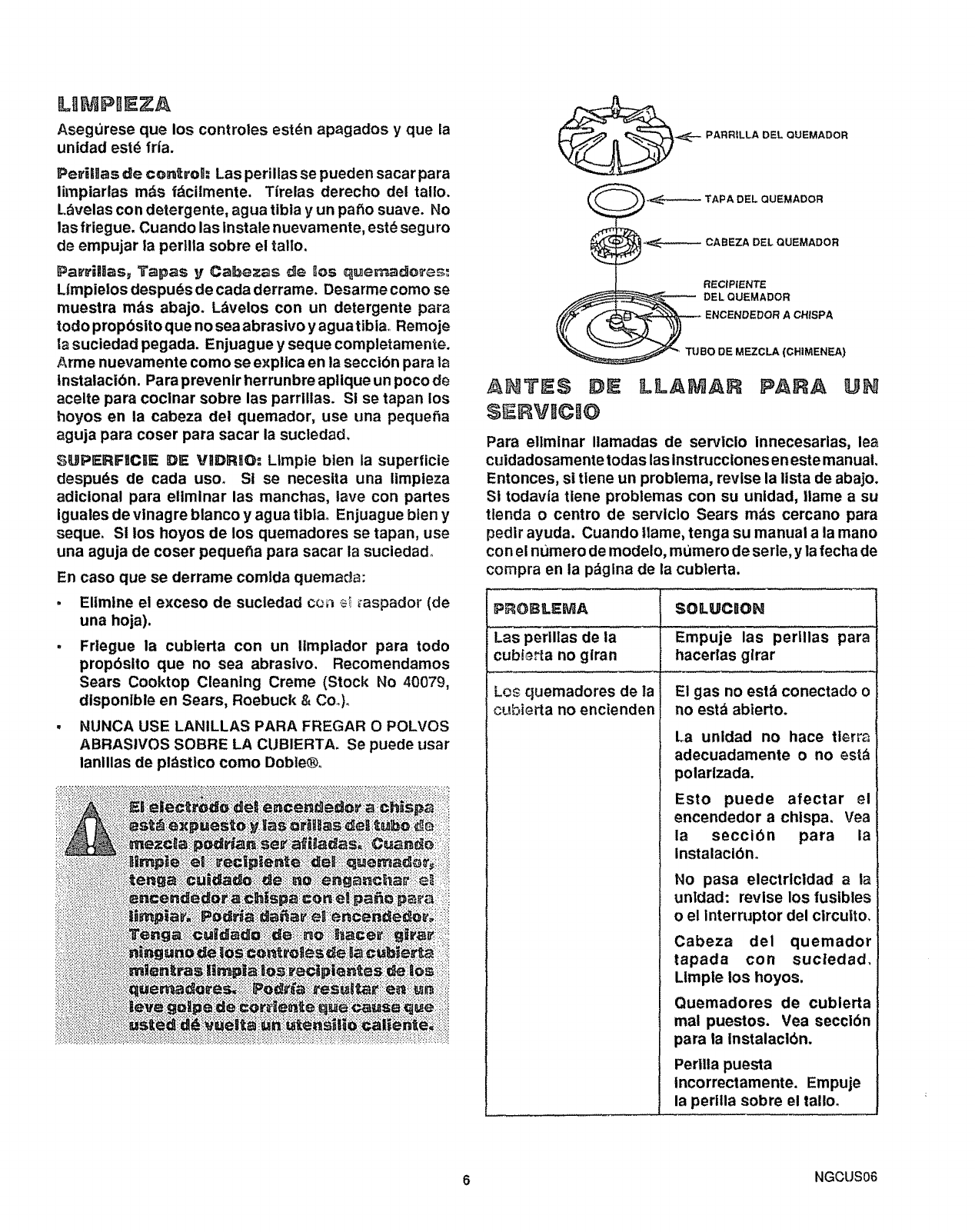 PONGASE EN CONTACTO CON SU VENDEDOR DE SEARS 0 CON IEL CENTRO DE SERVIIClO SEARS DE LA