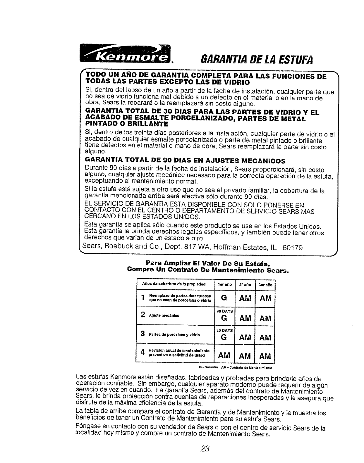 servicio de vez en cuando, La garant_a Sears, adem_s del contrato de Mantenimiento