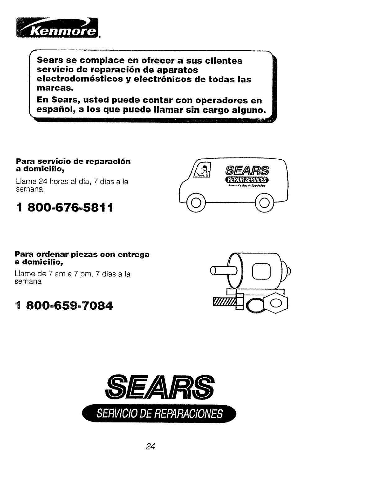 P6ngase en contacto con su vendedor de Sears o con el centre de servicio Sears de la
