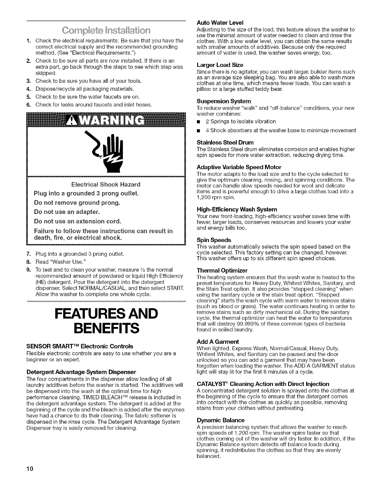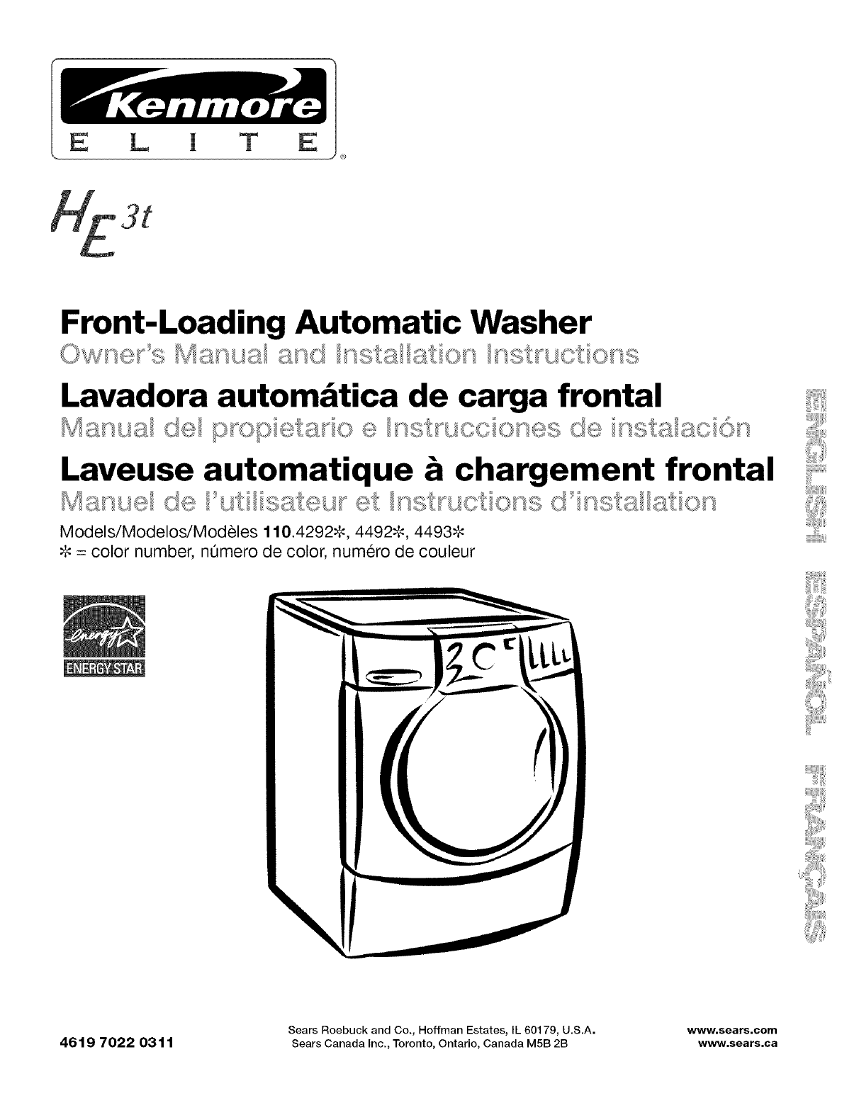 KENMORE Residential Washers Manual L0409348 KENMORE Residential Washers Owner's Manual, KENMORE Residential Washers installation guides