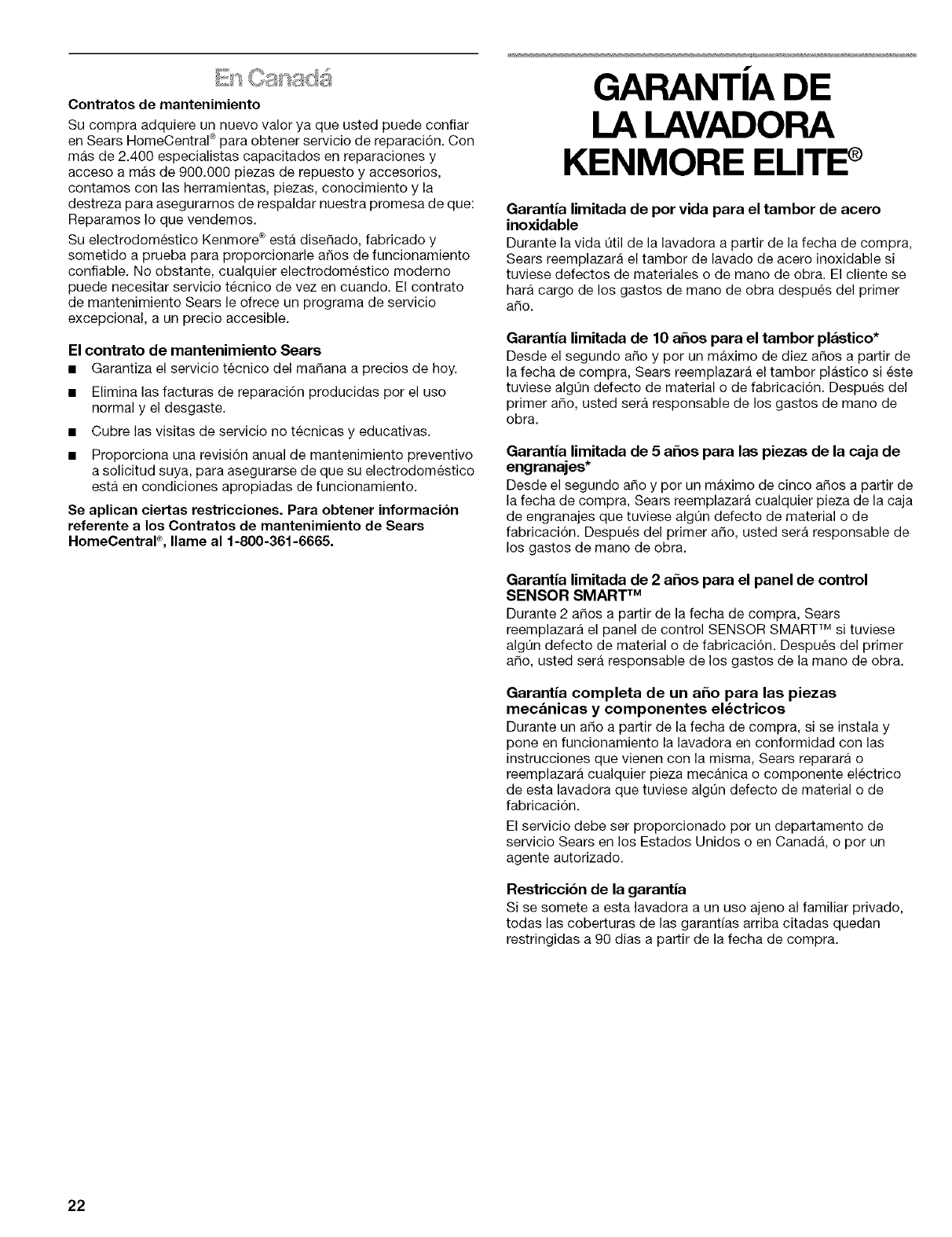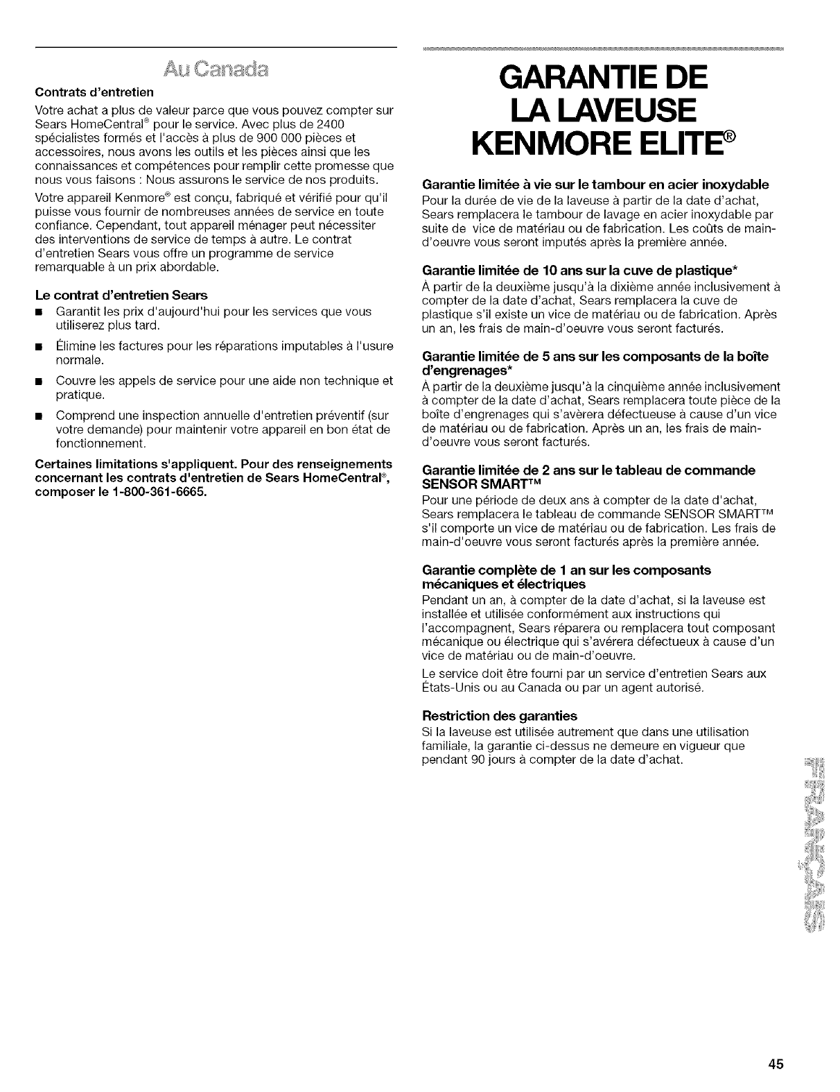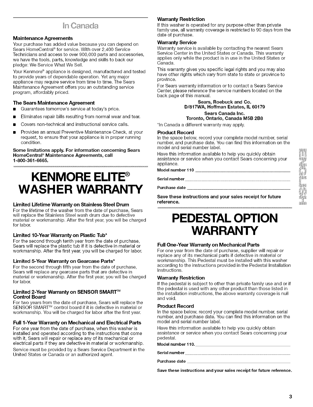 or maintenance agreement (Canada)on a product serviced by Sears: