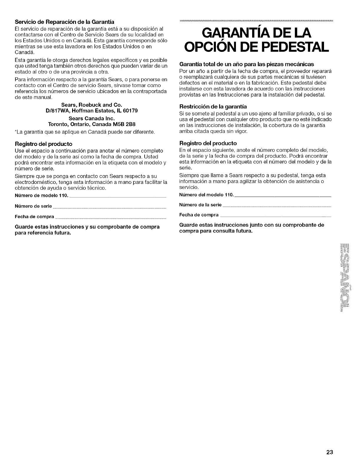 Sears Roebuck and Co., Hoffman Estates, IL 60179, U.S.A. www.sears.com
