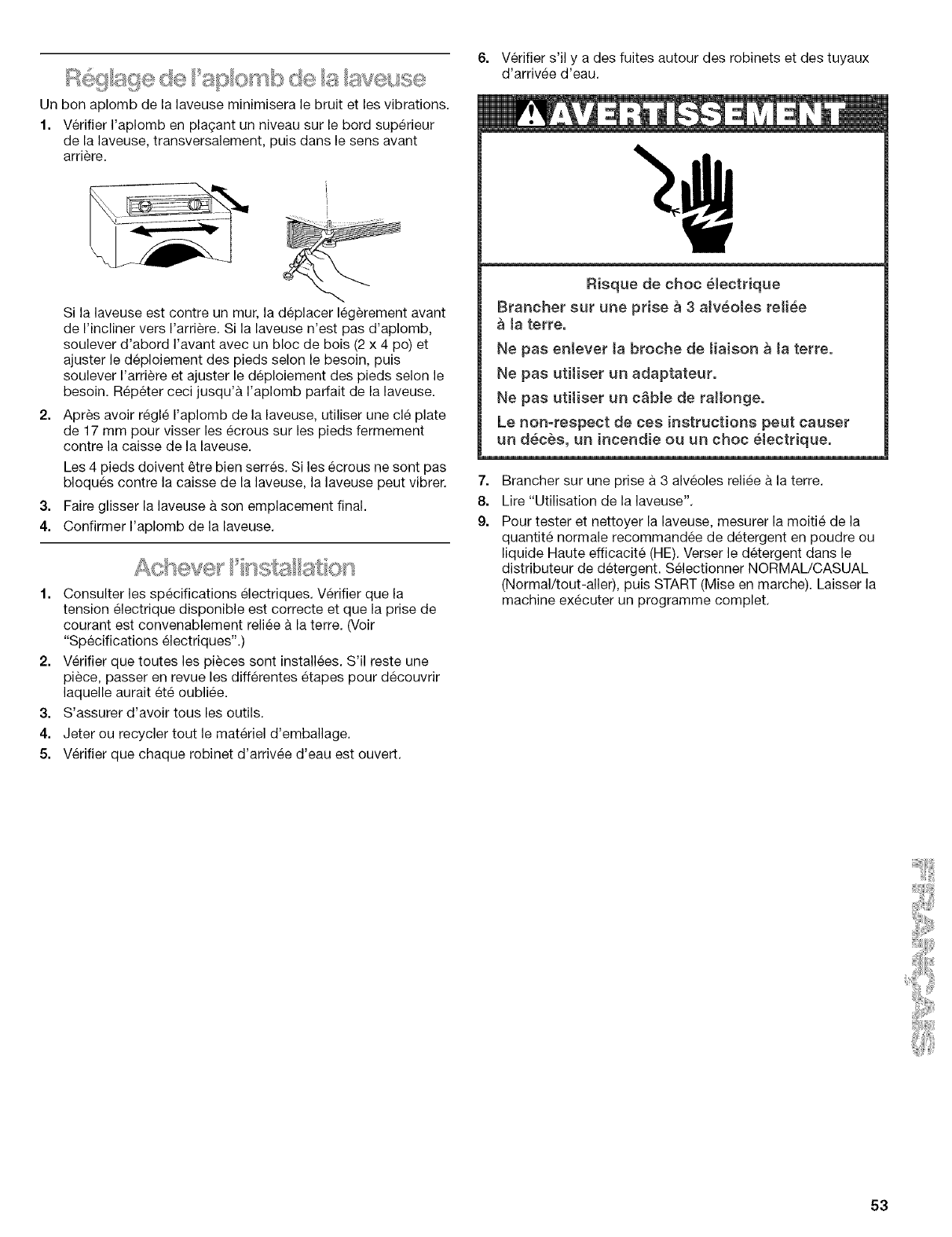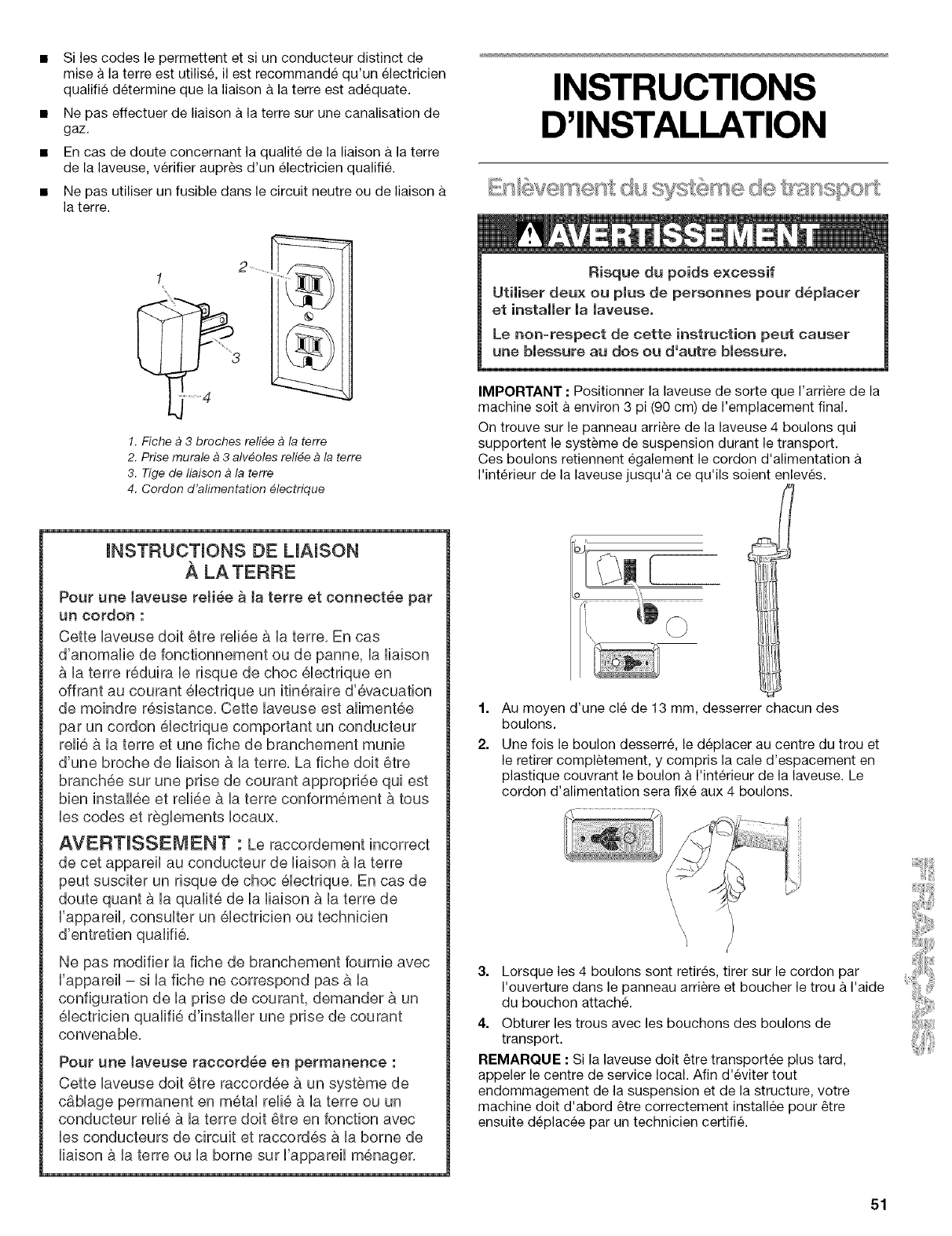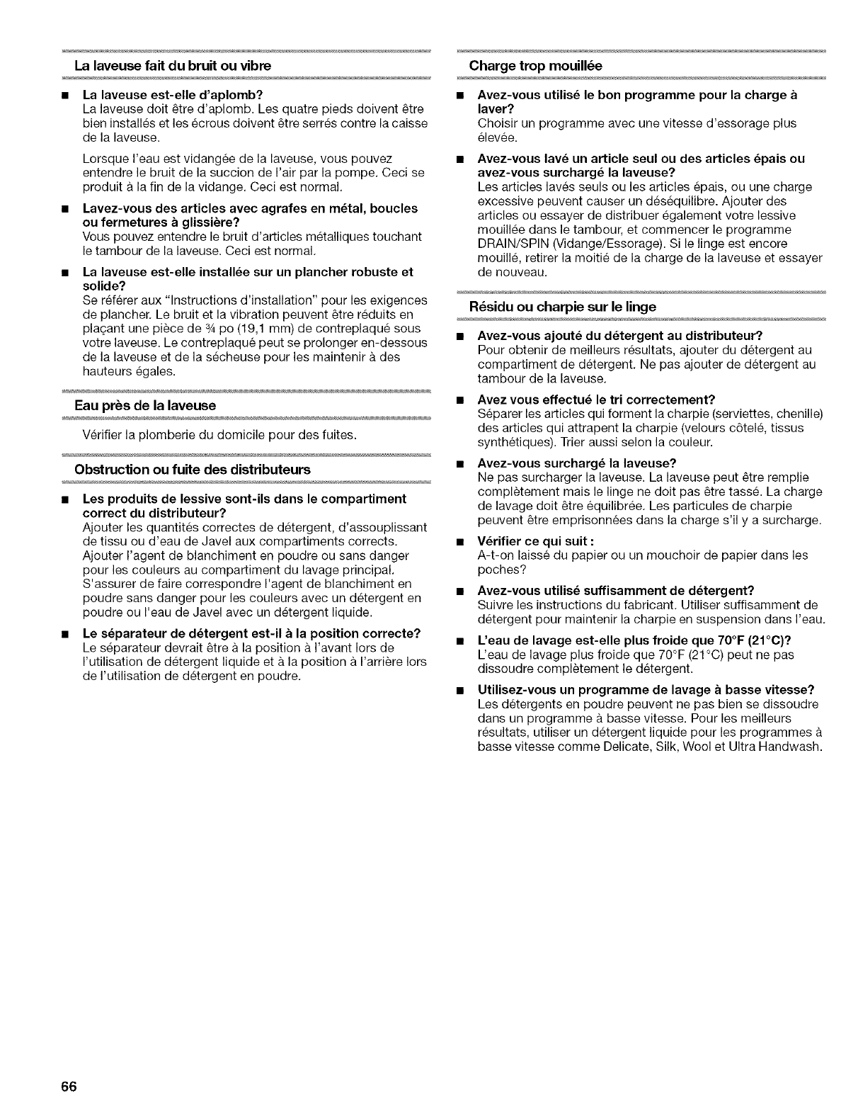 La charge dolt _tre equilibree et la laveuse ne dolt pas _tre