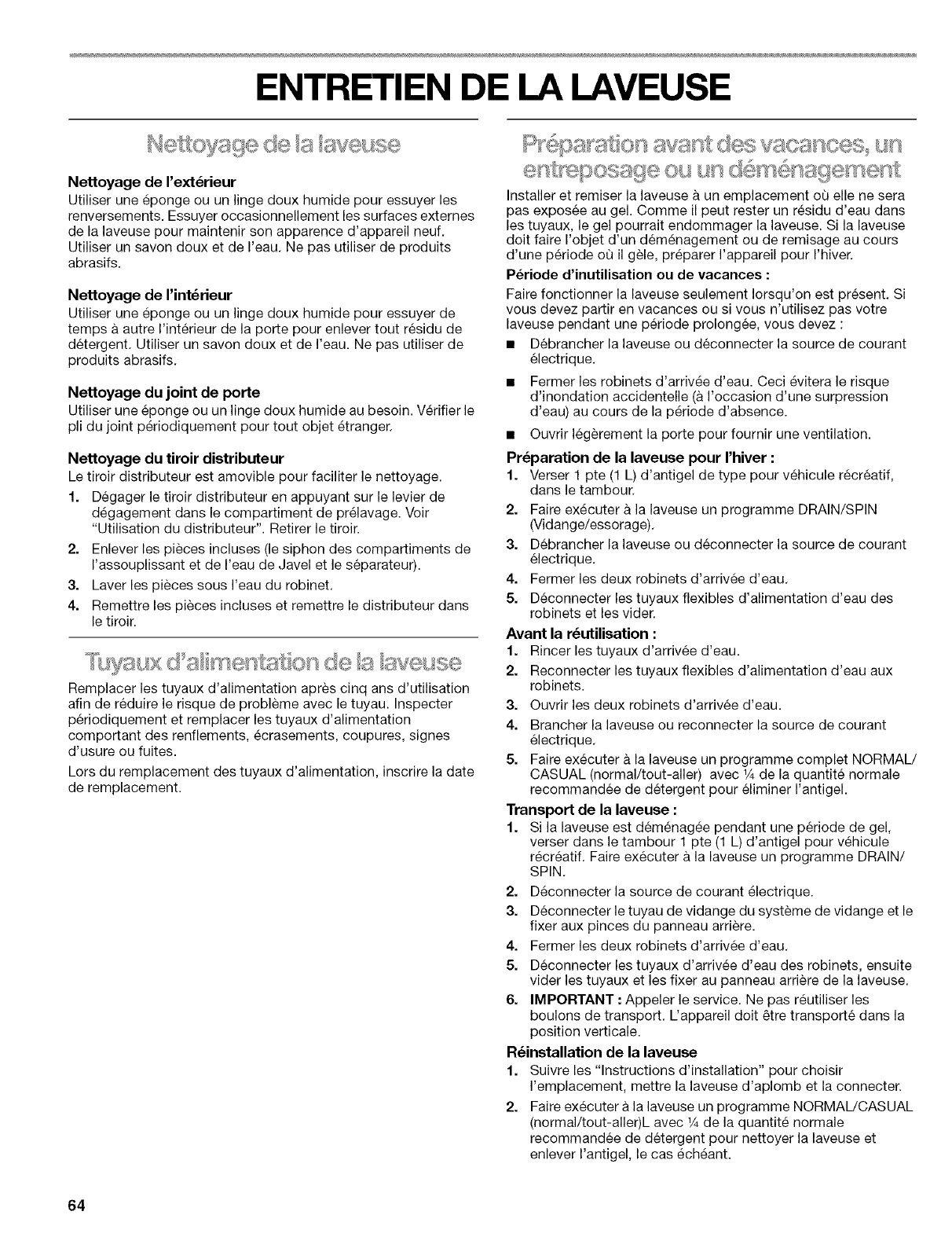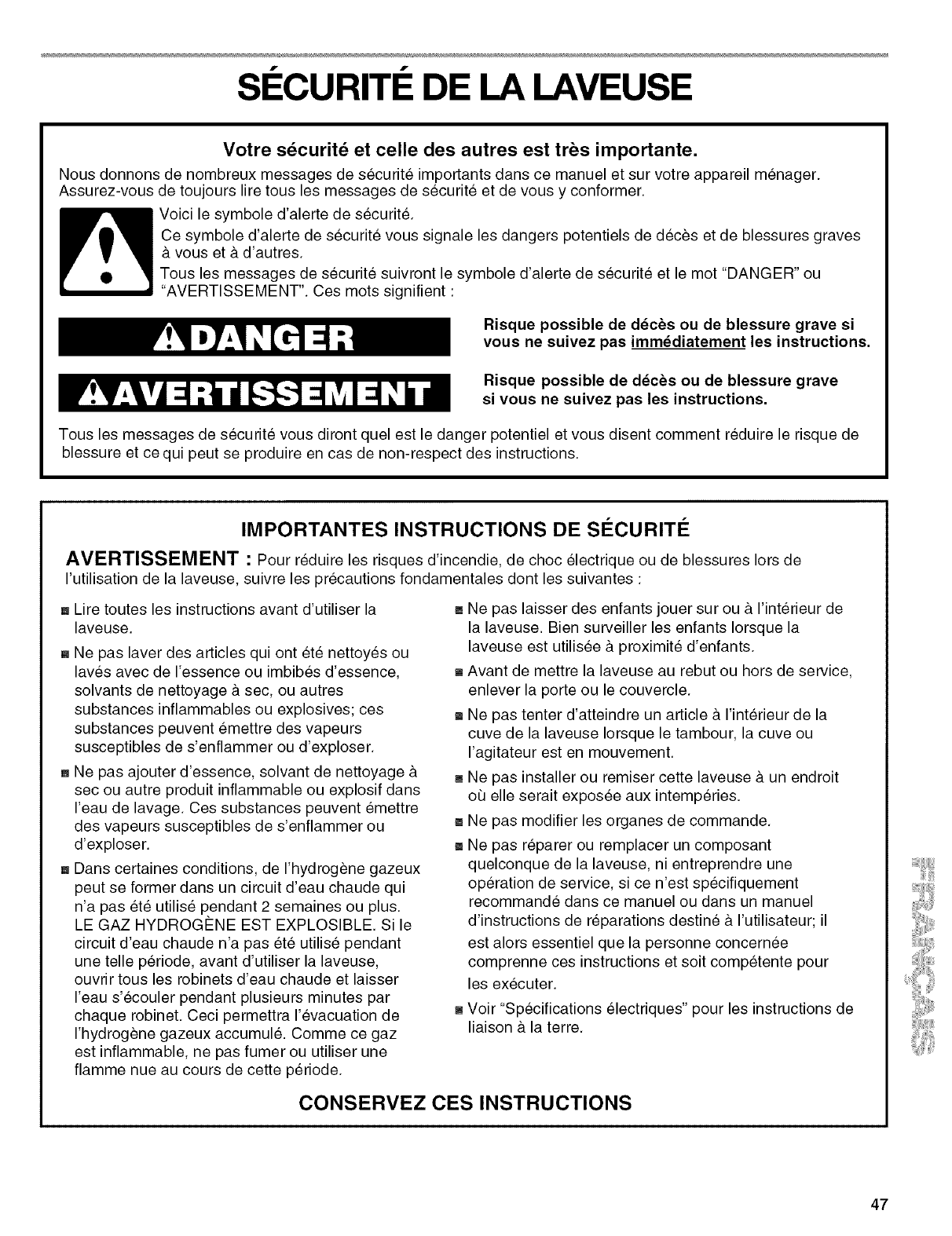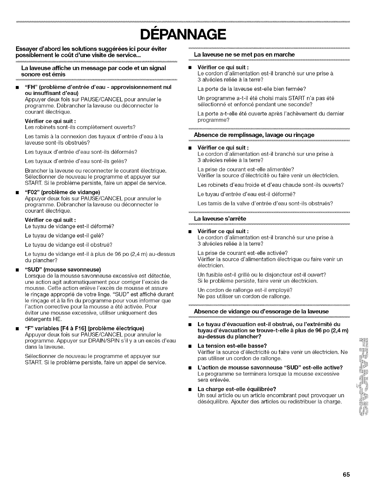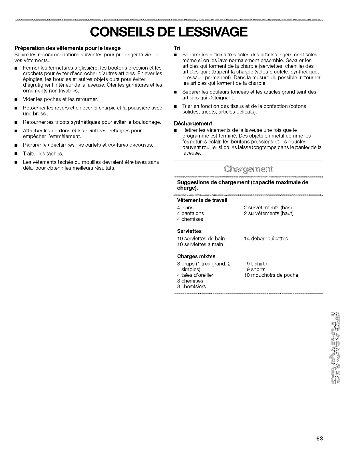 La charge dolt _tre equilibree et la laveuse ne dolt pas _tre