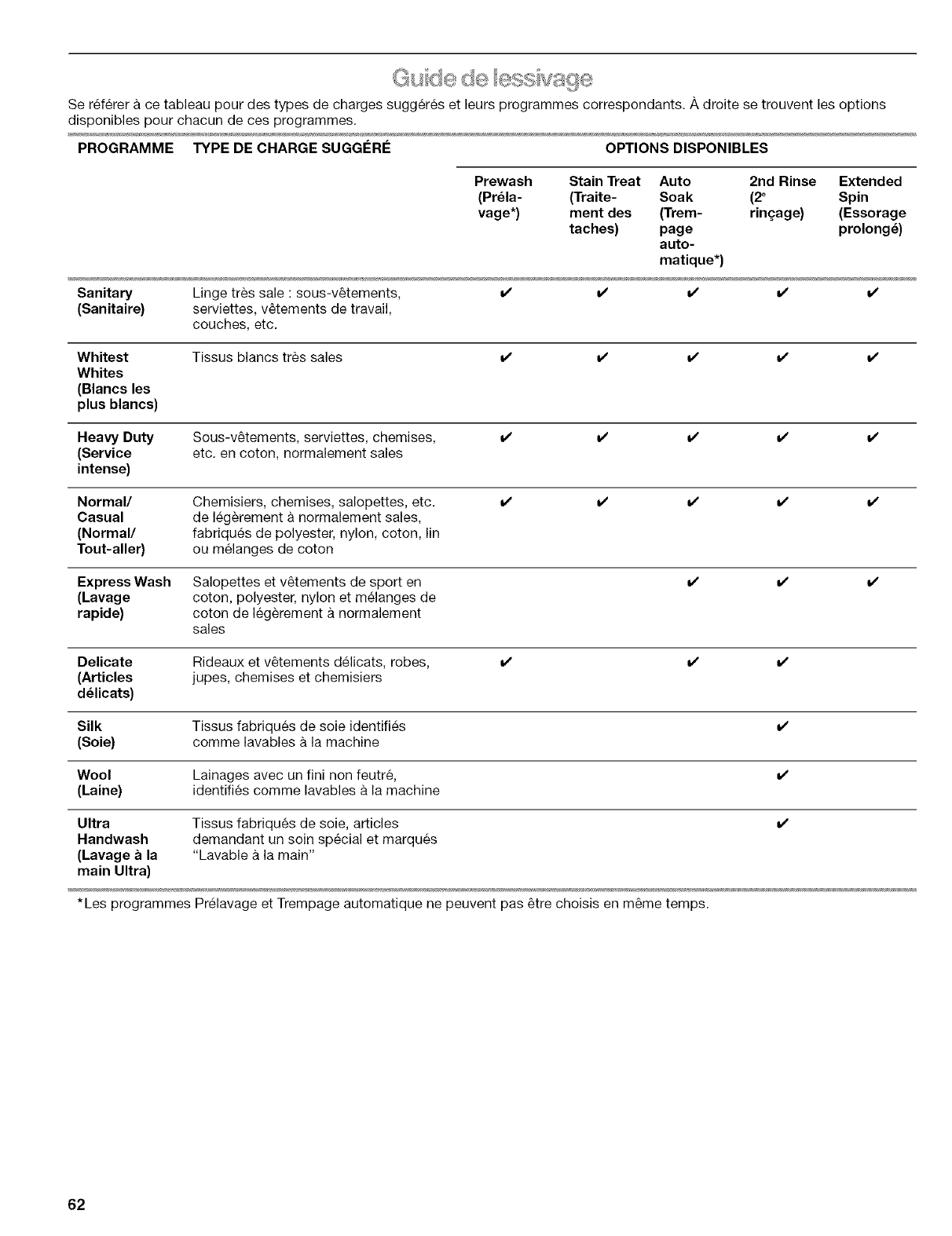 Pour de meilleurs resultats, utiliser Express Wash (lavage