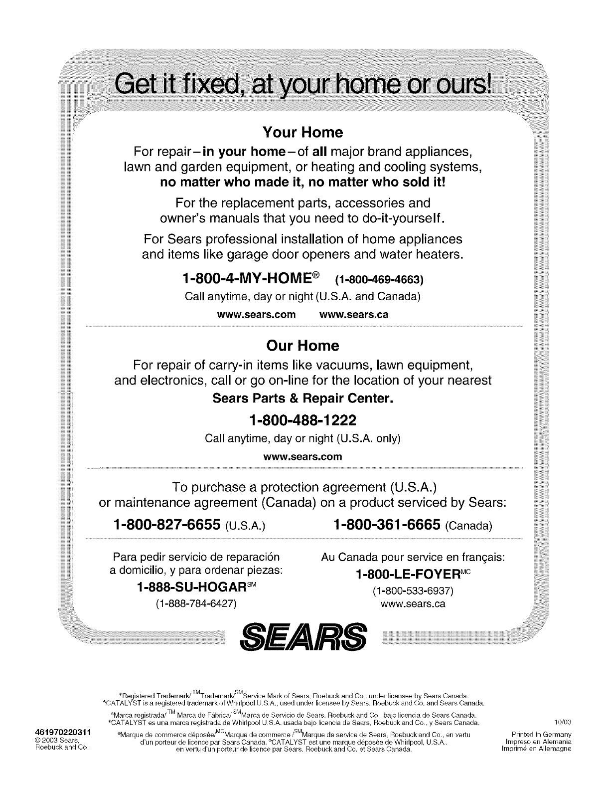 d'un porteur de licence par Sears Canada. ®CATALYST est une marque d6pos6e de Whirlpool, U.S.A.,