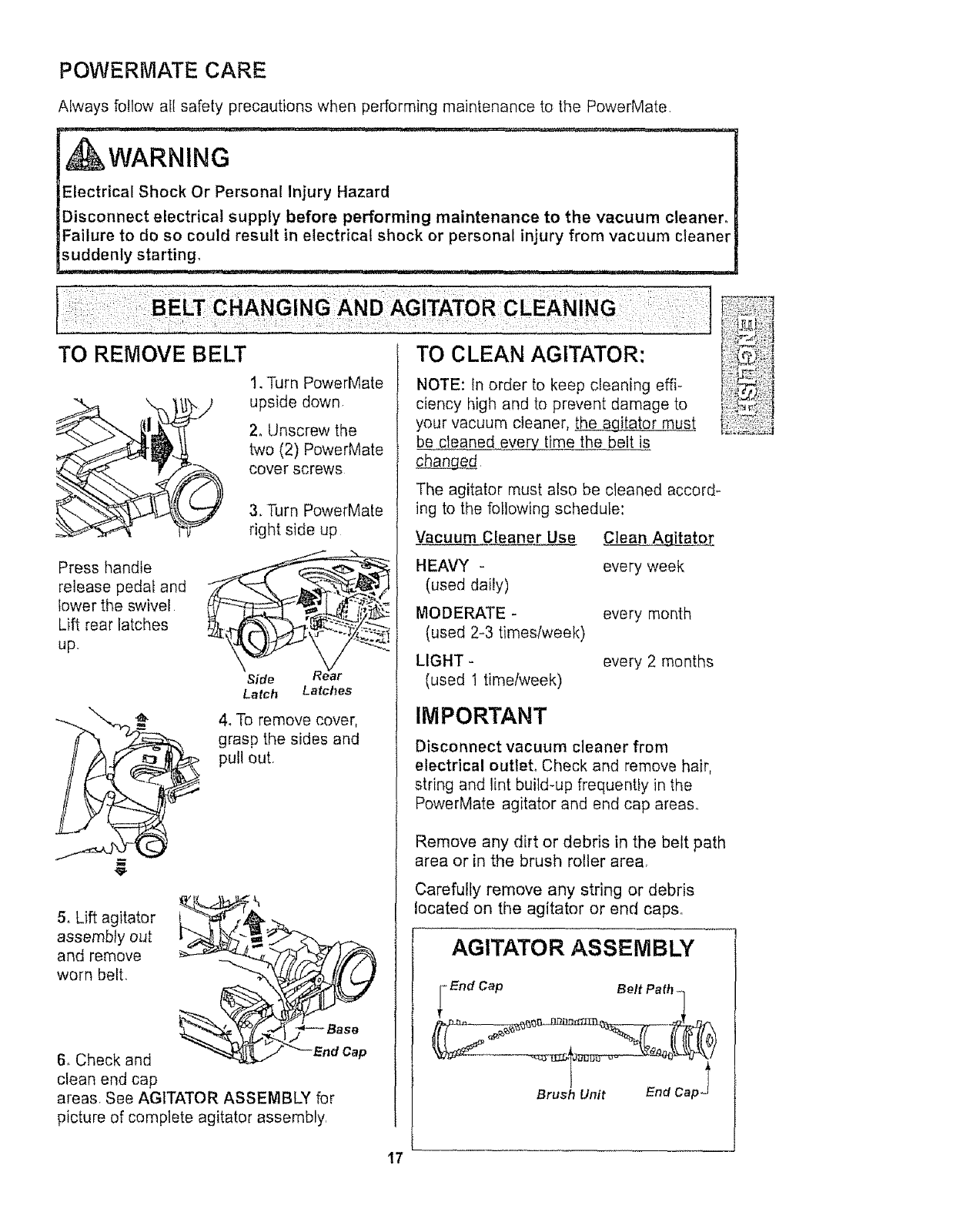 Belt Changing and Agitator Cleaning 17-18