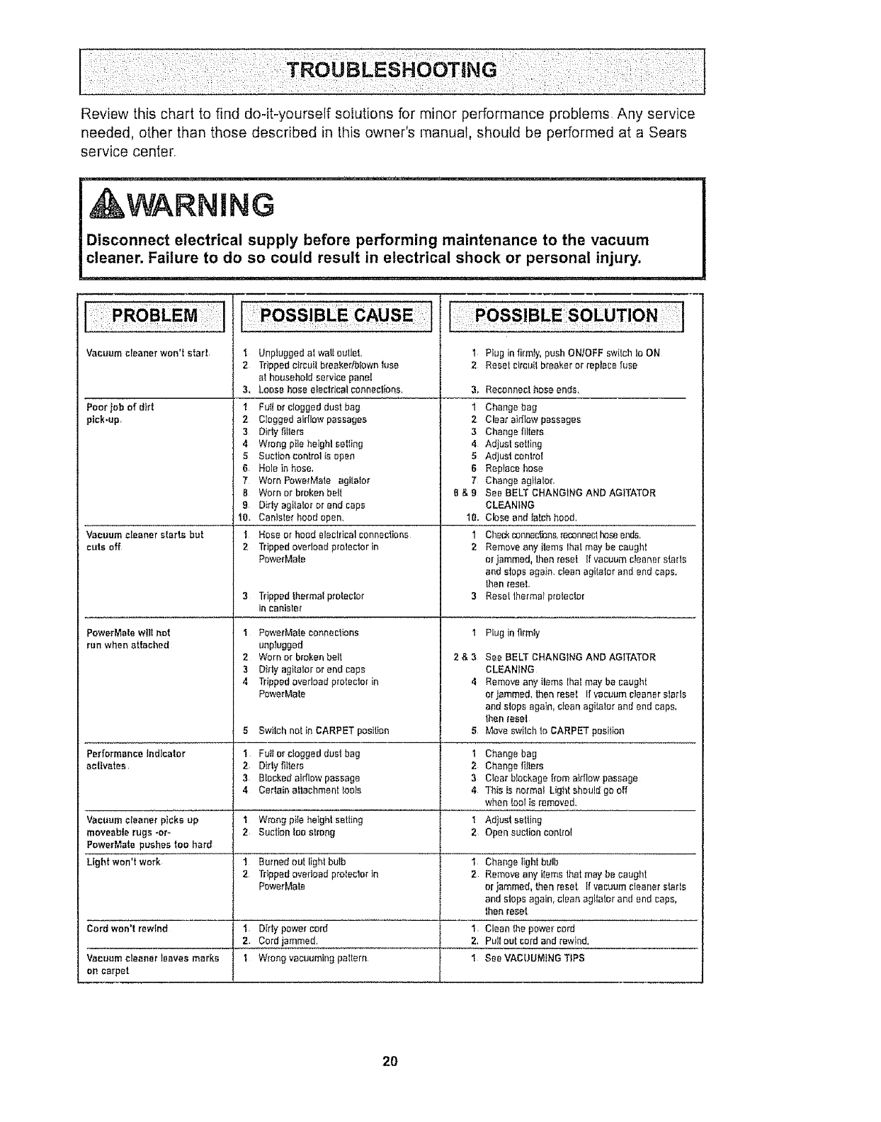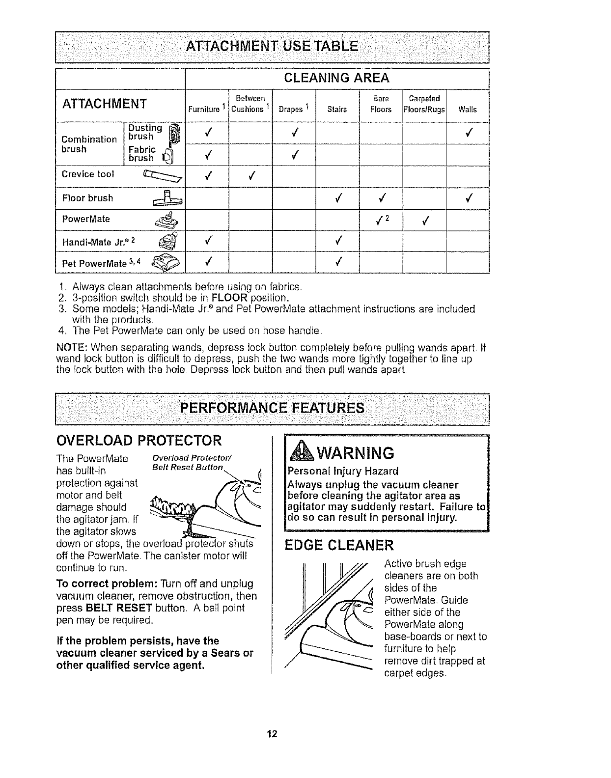 For more information about vacuum cleaner care and operation, call your nearest Sears store