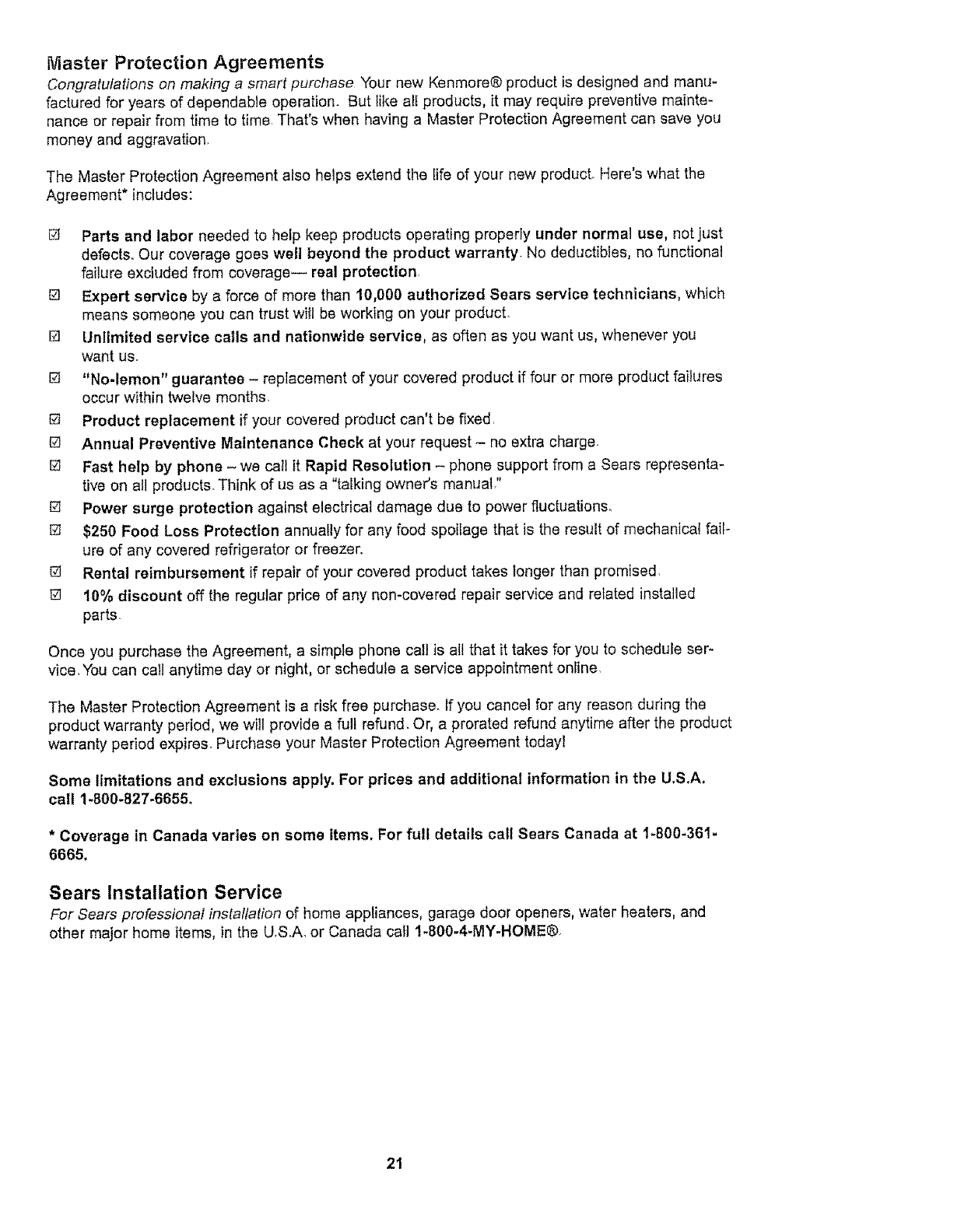* Coverage in Canada varies on some items, For full details call Sears Canada at 1-800-361-