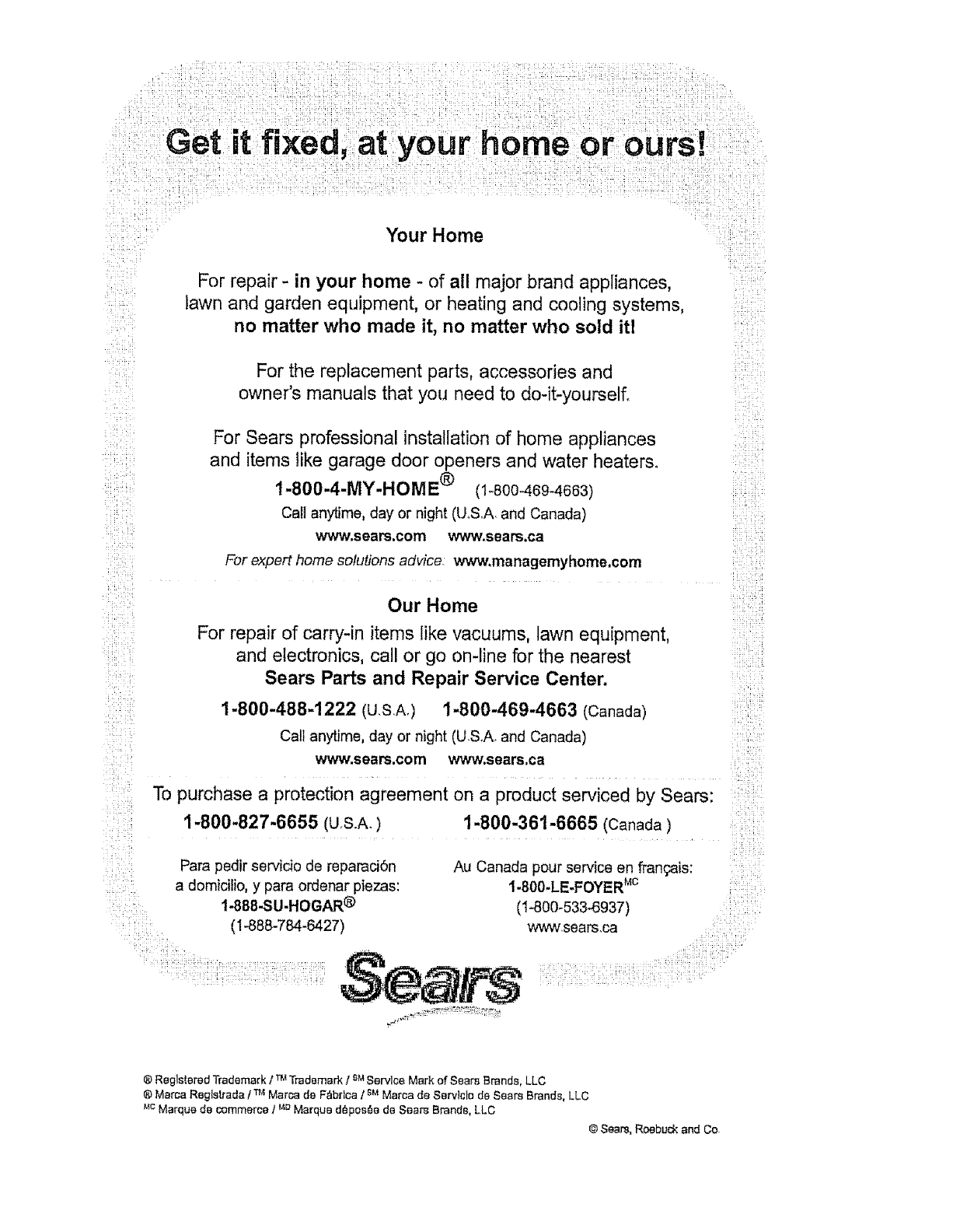 ® Marca Reglstrada ITM Marca de F_brtca tsMMarca de Serv]cle de Sears Brands, LLC