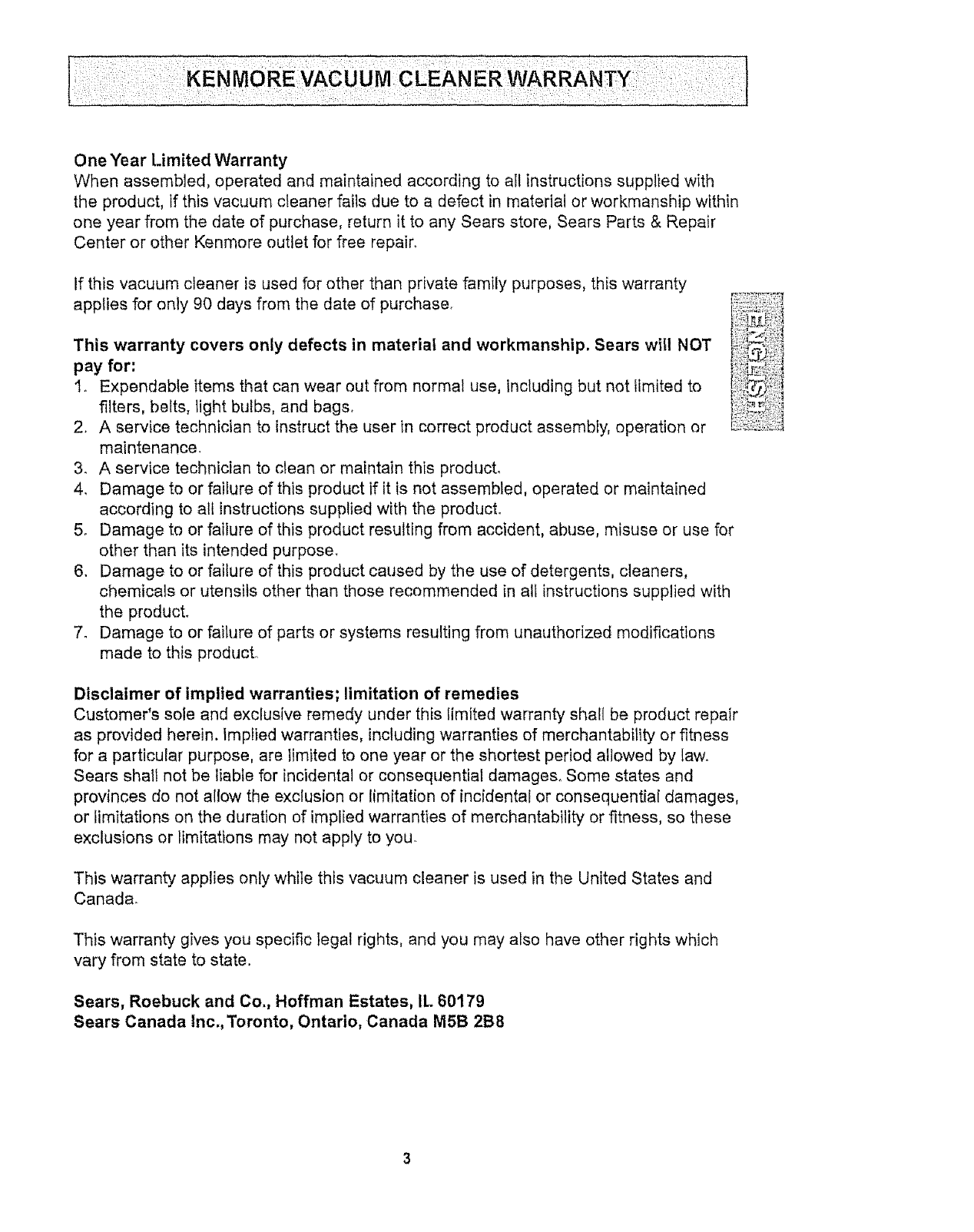 KenmoreVacuum CteanerWarranty .. 3