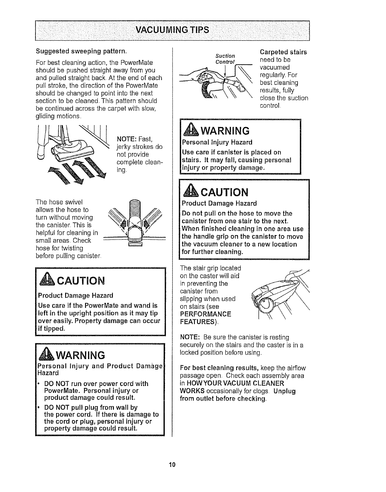 Vacuuming Tips ................. 10