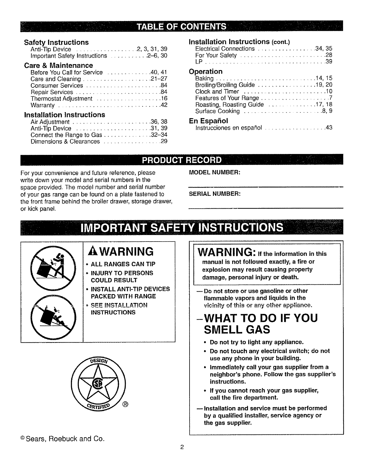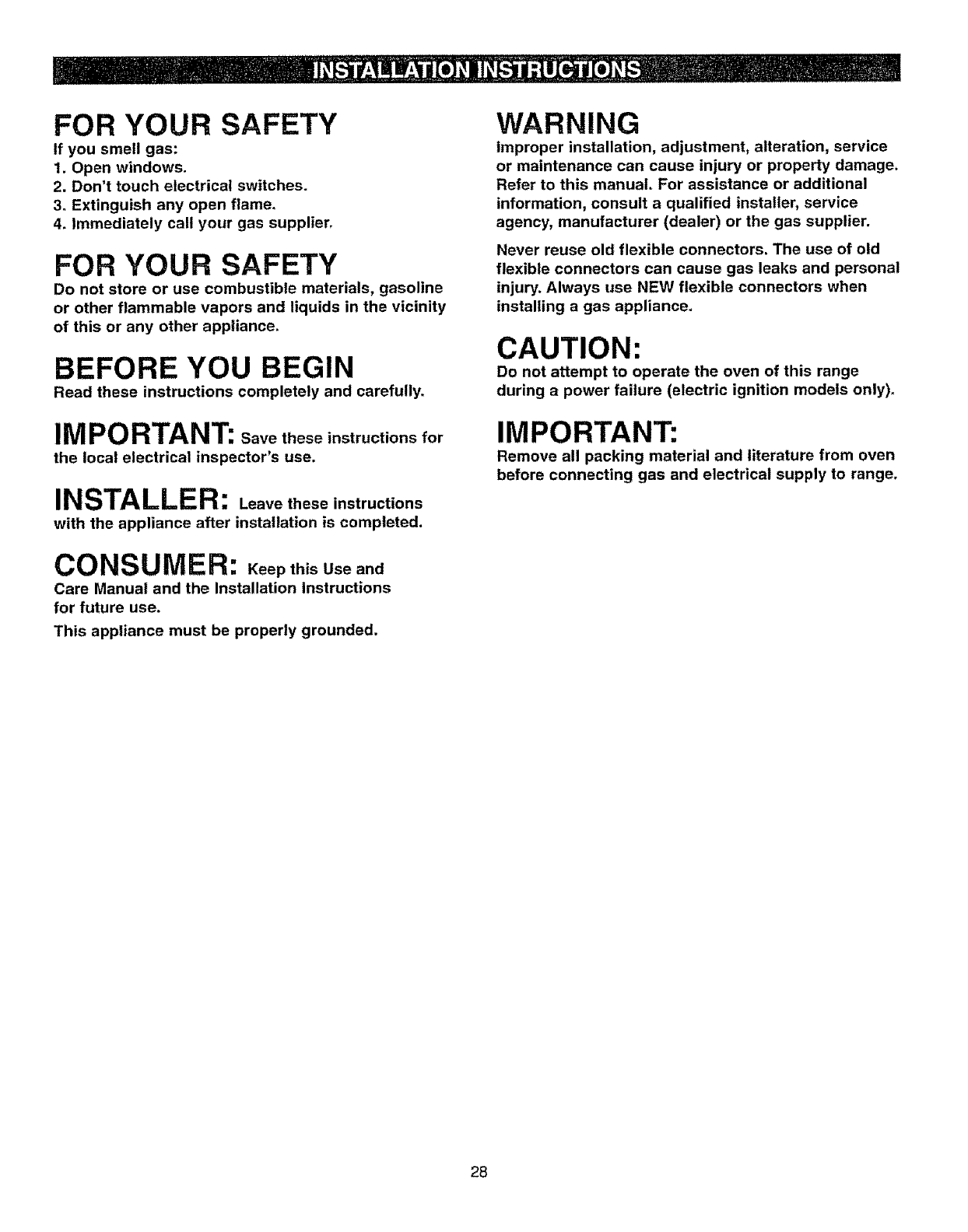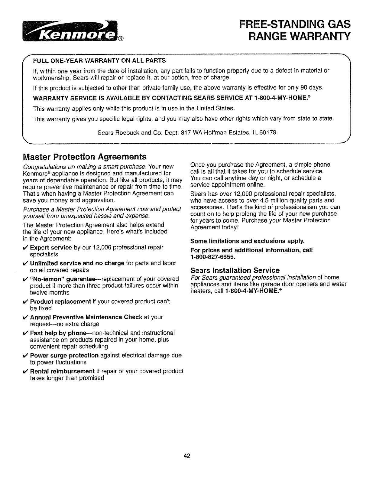 KENMORE Free Standing, Gas Manual L0801325 KENMORE Free Standing, Gas Owner's Manual, KENMORE Free Standing, Gas installation guides