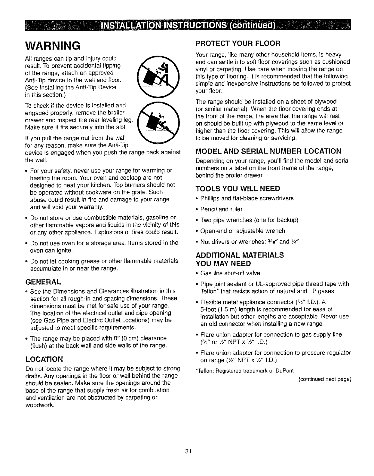• INSTALL ANTI-TIP DEVICES