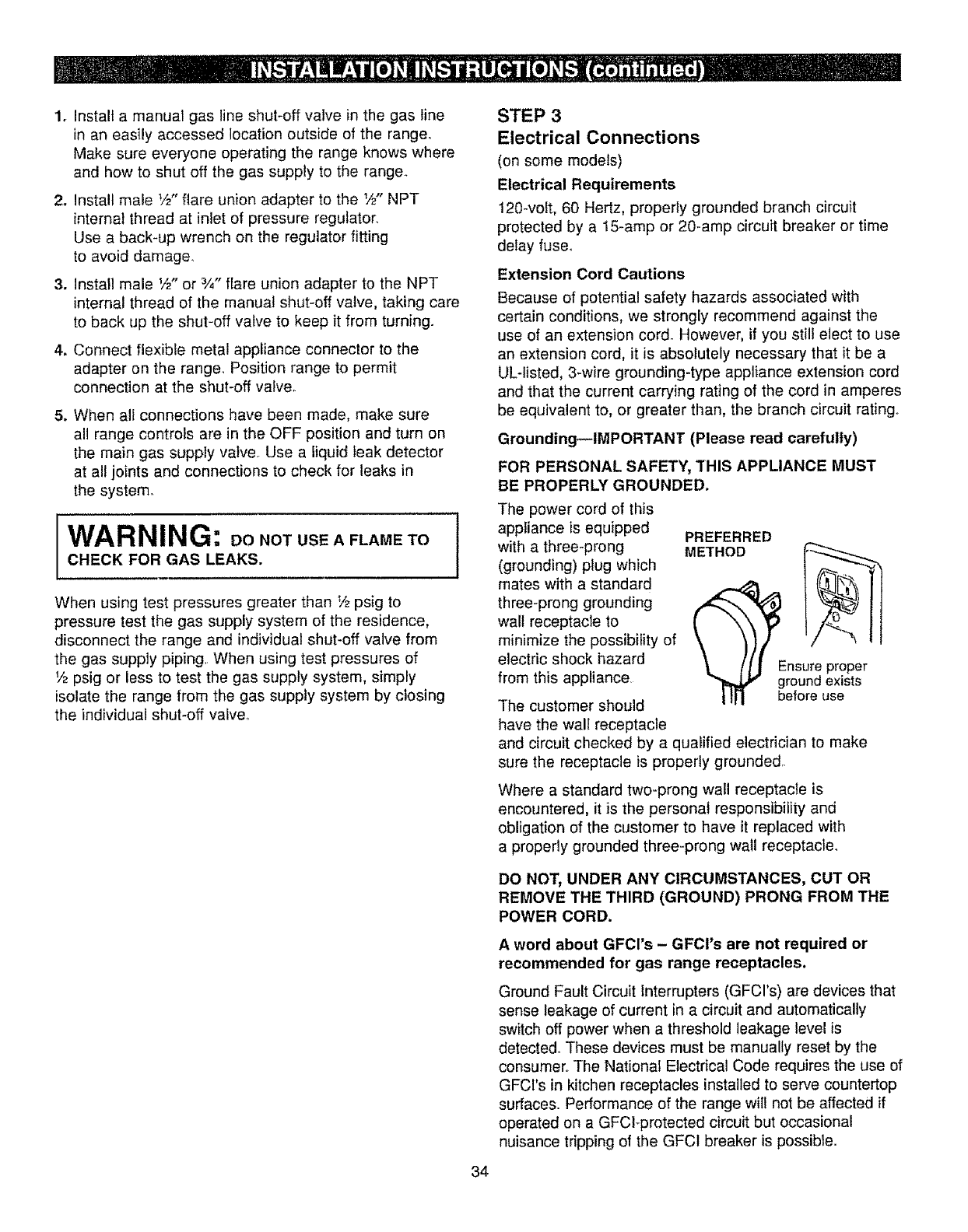 Connect the Range to Gas ..................... 32-34