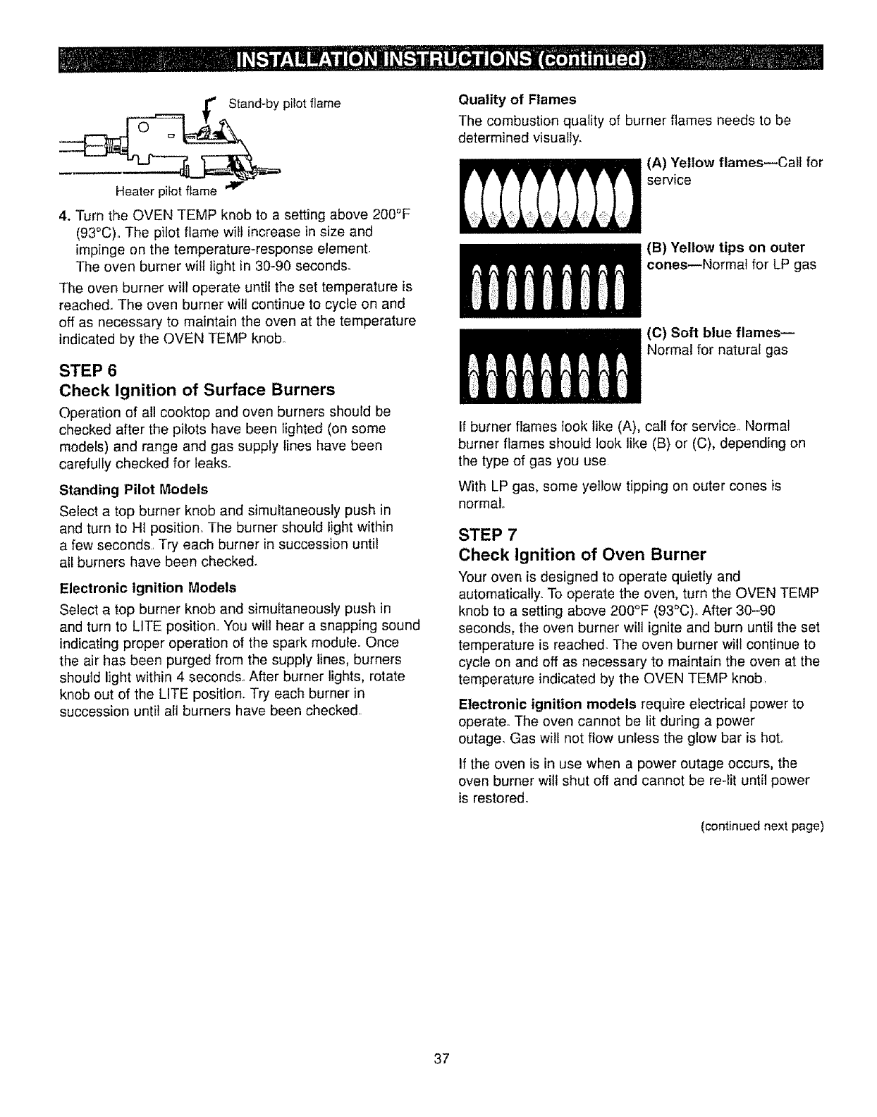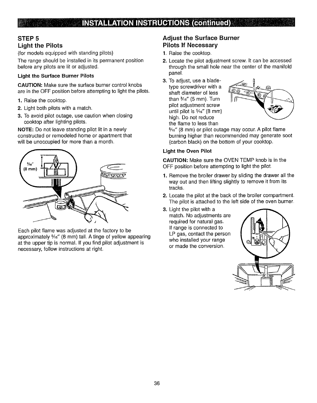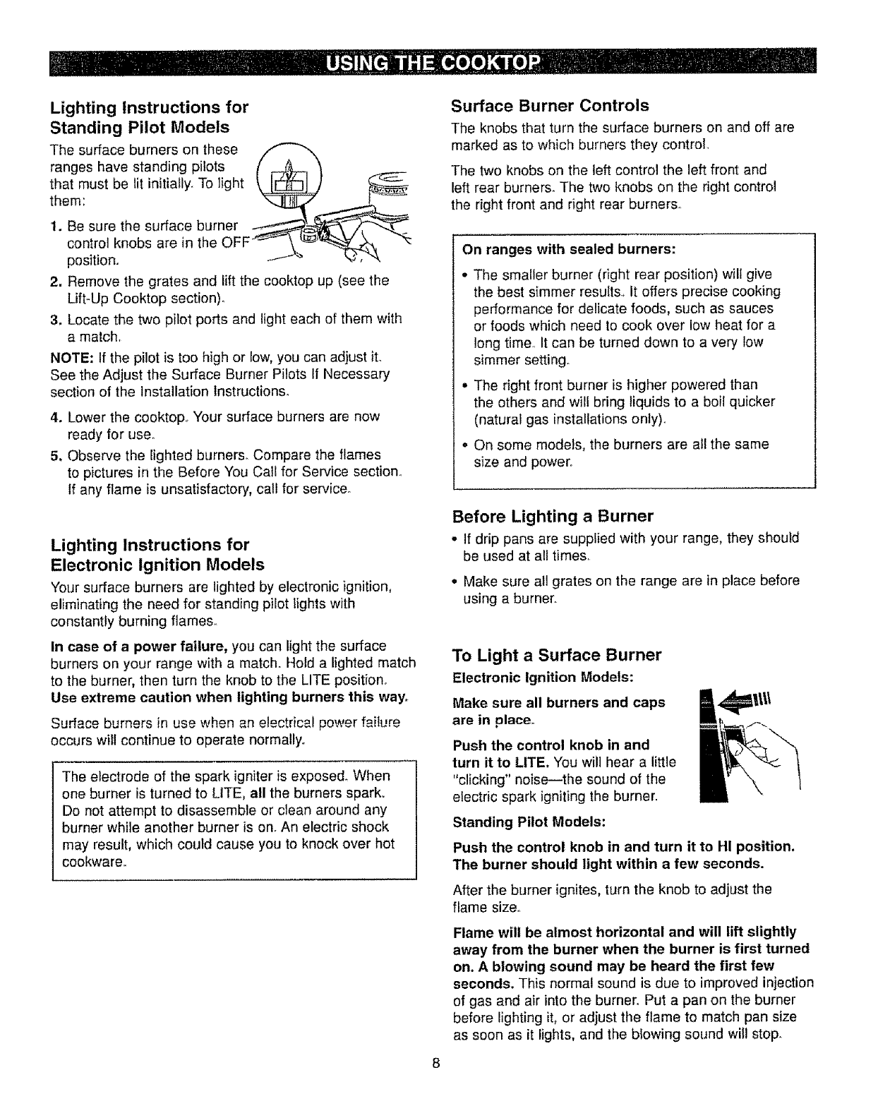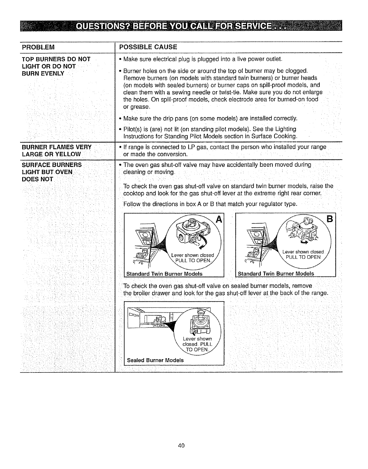 • Piiot(s) is (are) not iit (on standing pilot models). See the Lighting