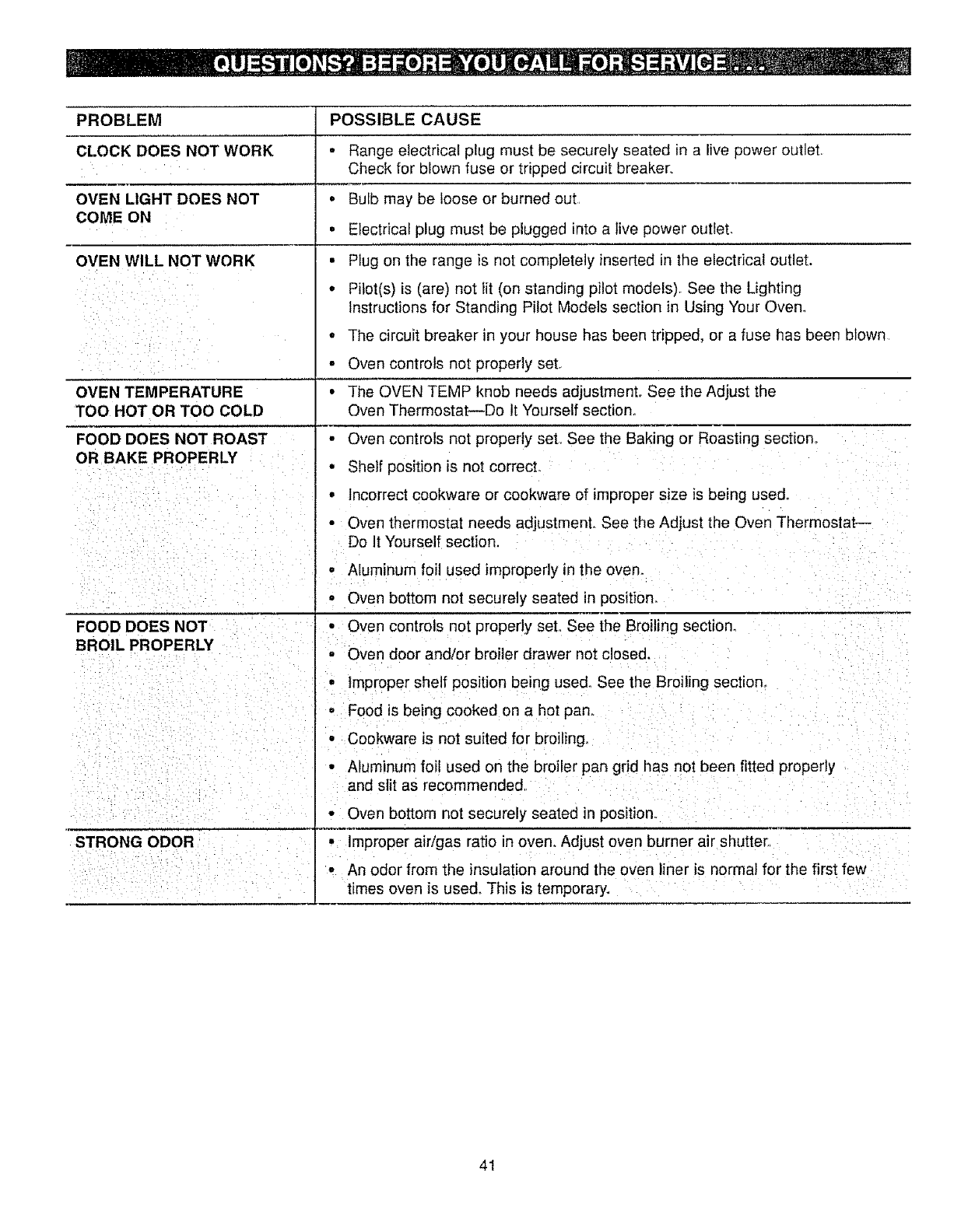 Before You Call for Service ............... 40, 41