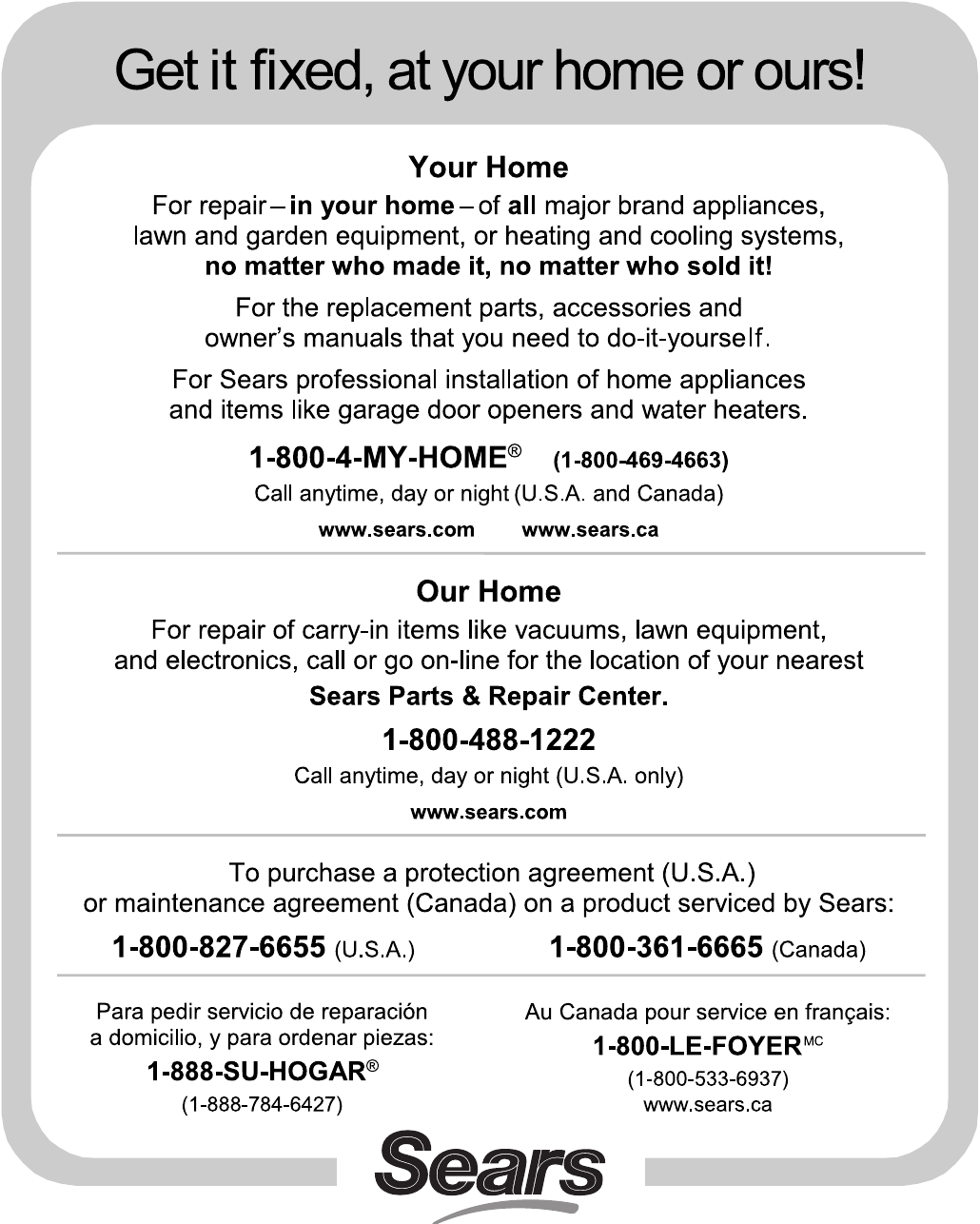 Sears Roebuck and Co., Hoffman Estates, IL 60179 U.S.A. www.sears.com