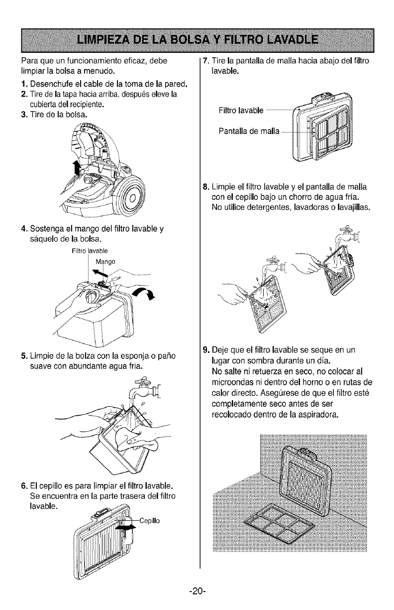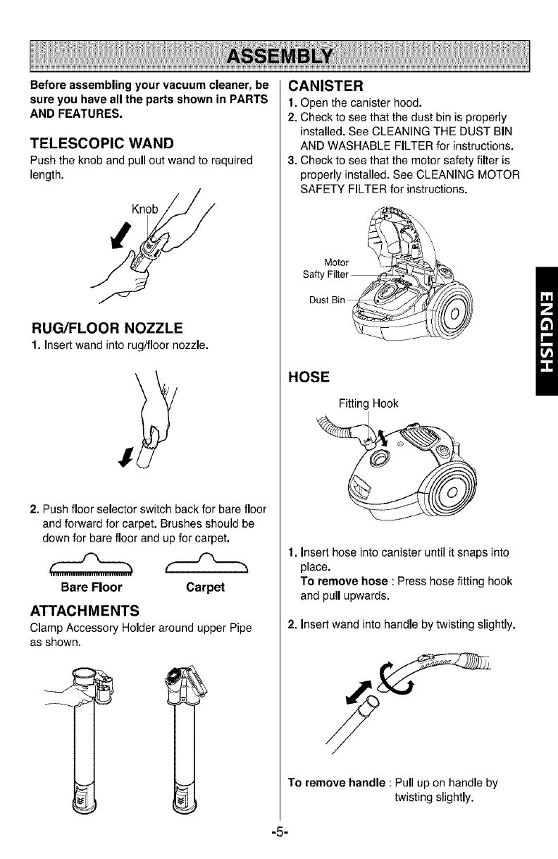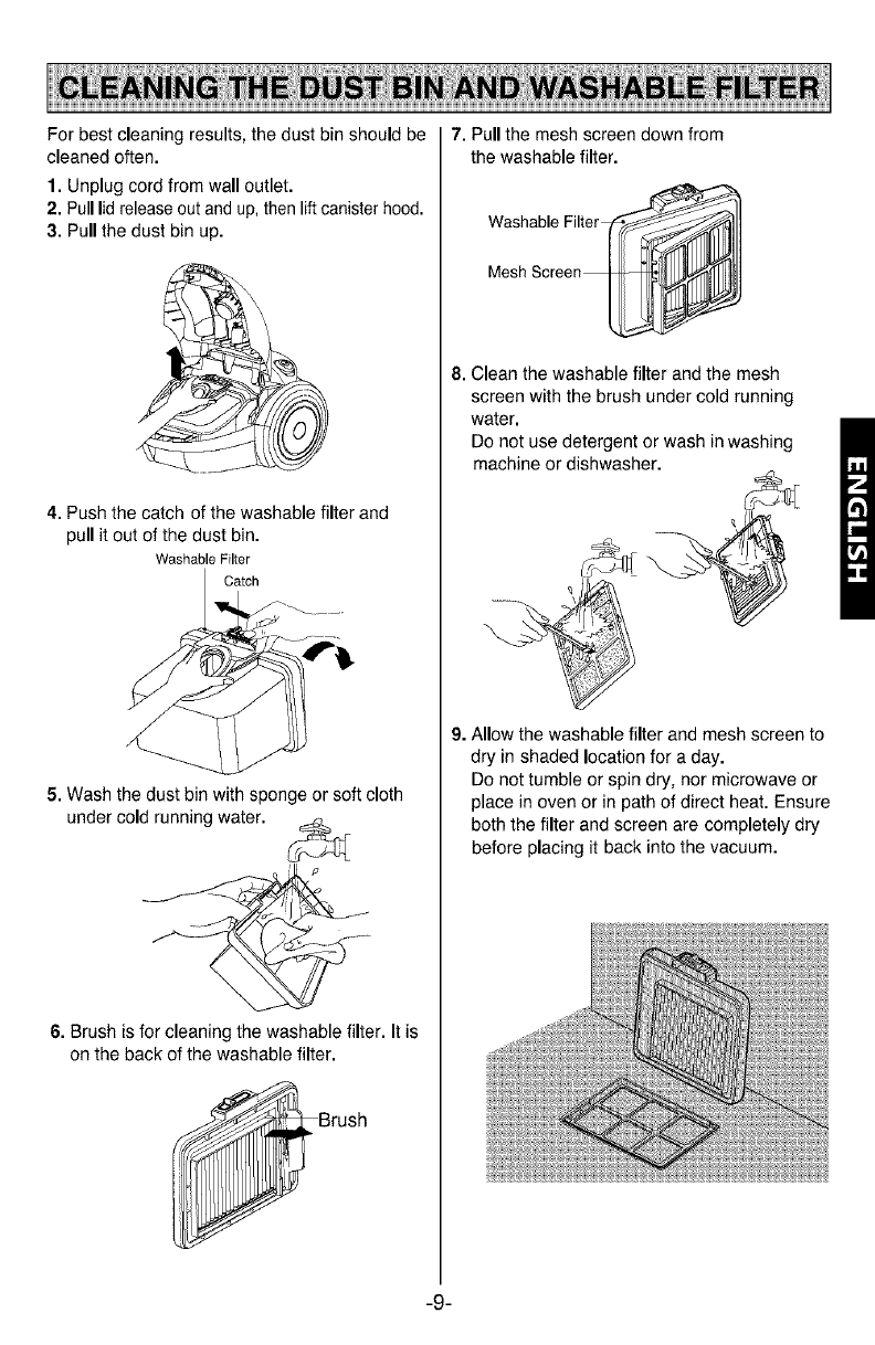 Cleaning The Dust Bin and Washable Filter ....9