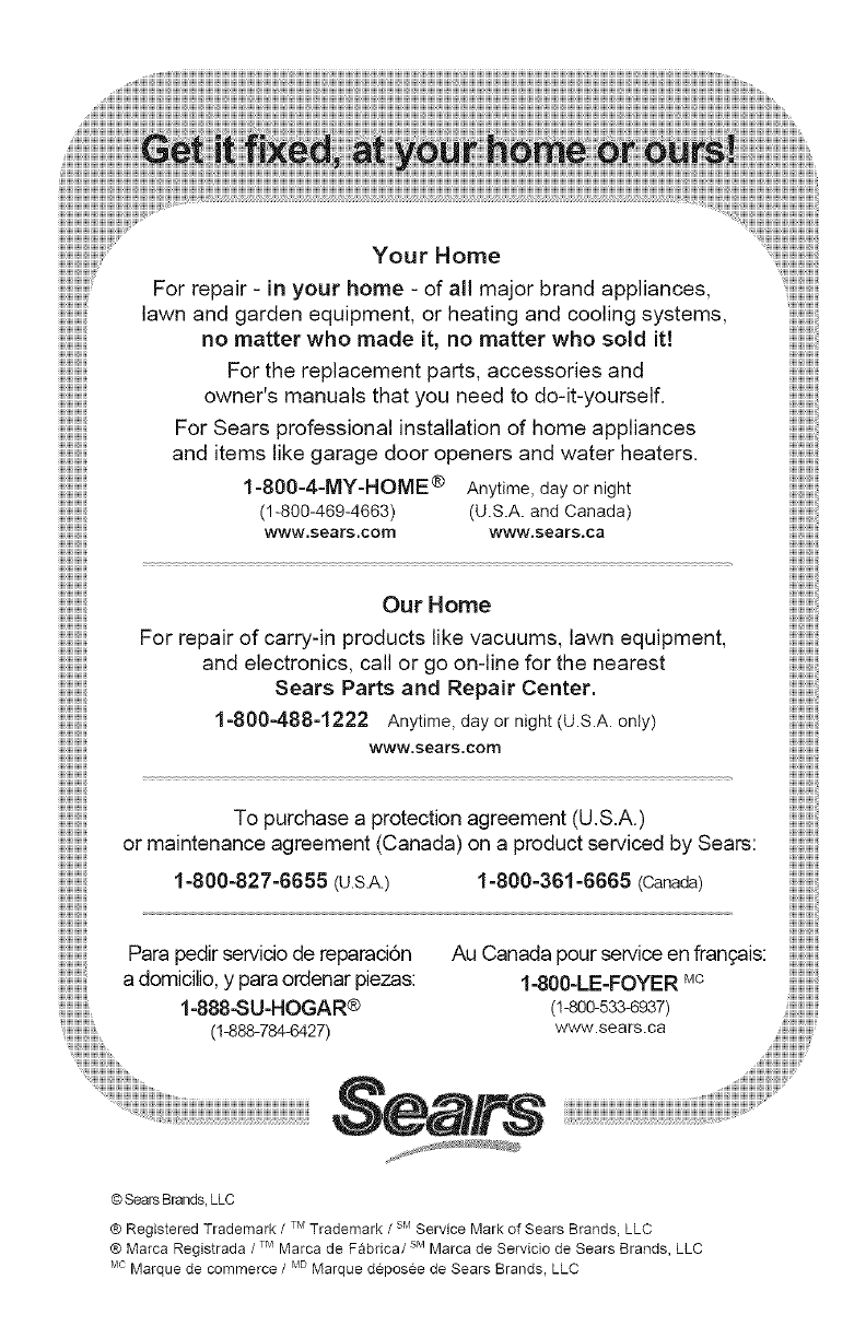 ormaintenanceagreement(Canada) onaproductservicedbySears: iiiii!!iiiilIBiii