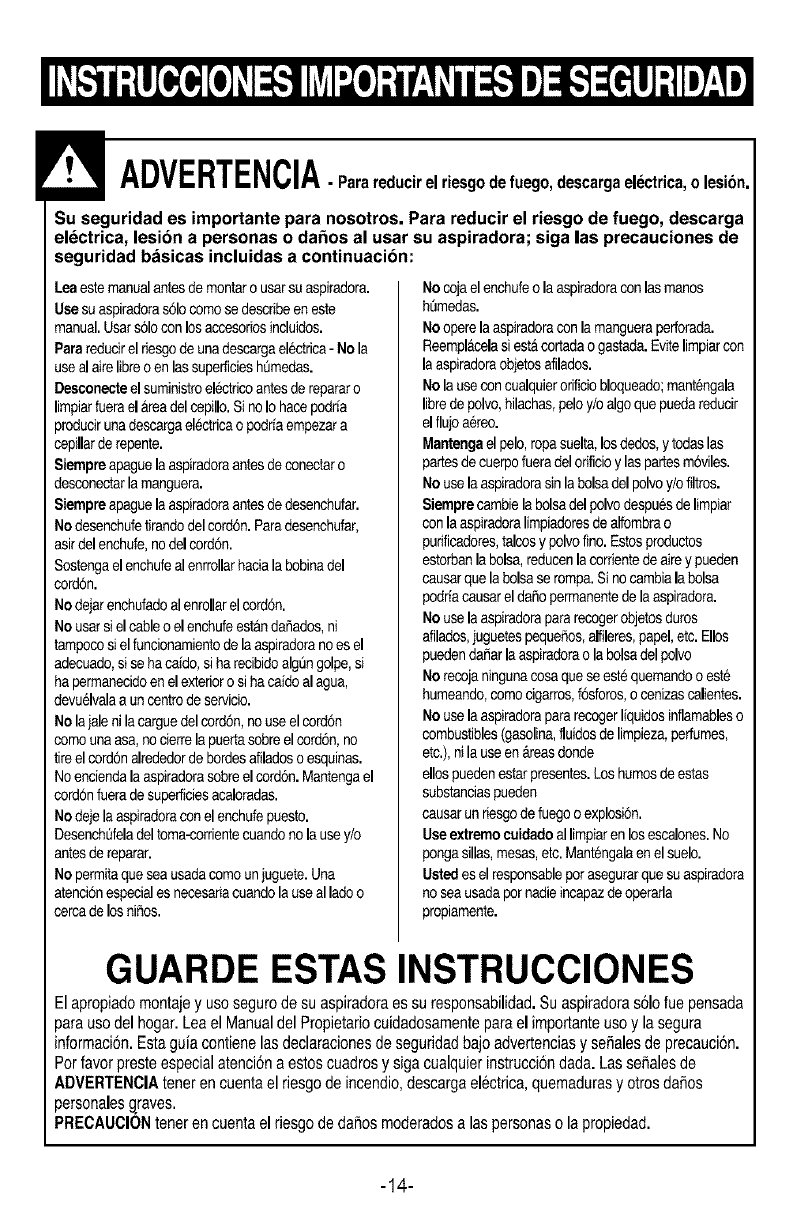 persons or damage when using your vacuum cleaner, follow basic safety precautions