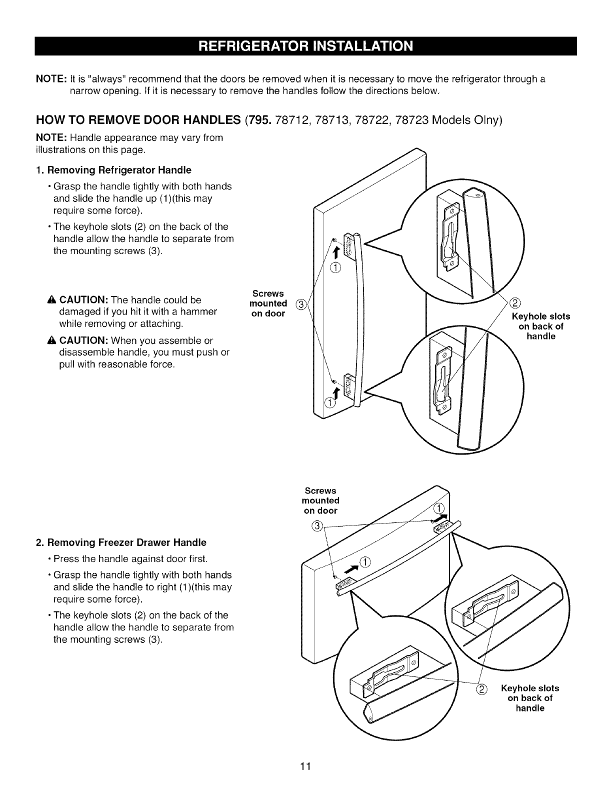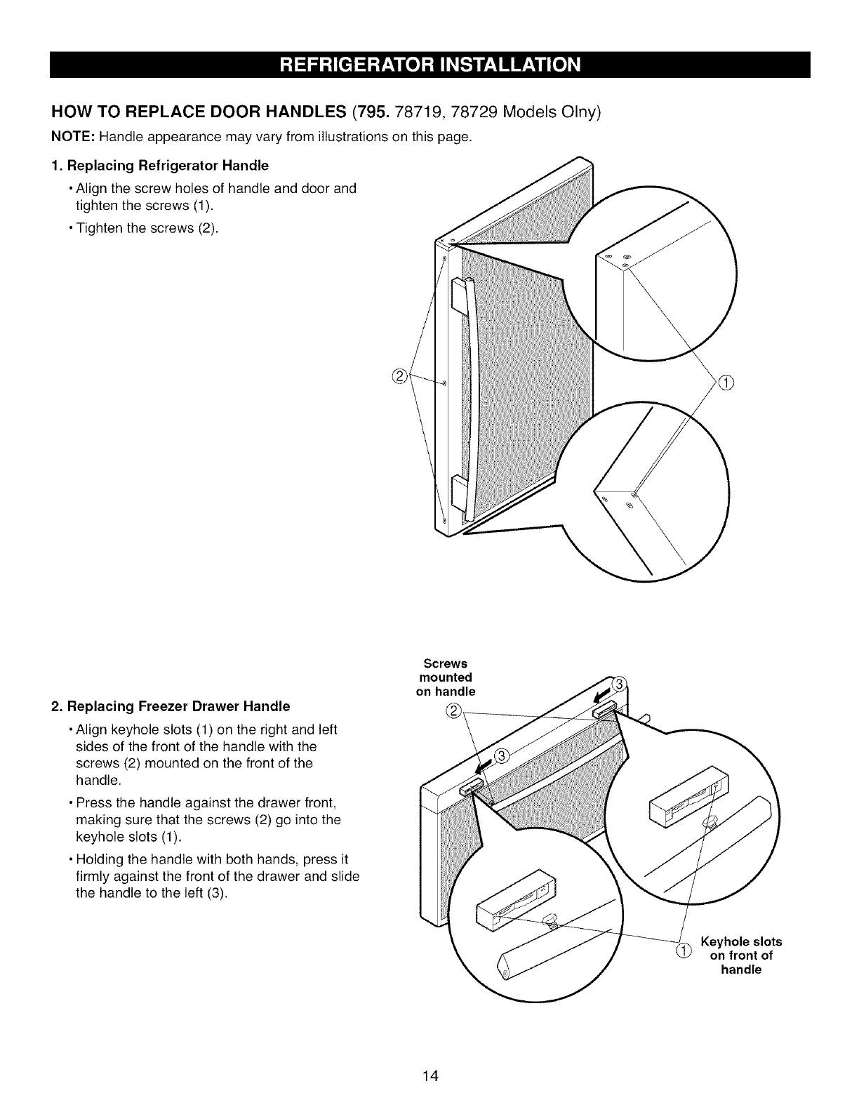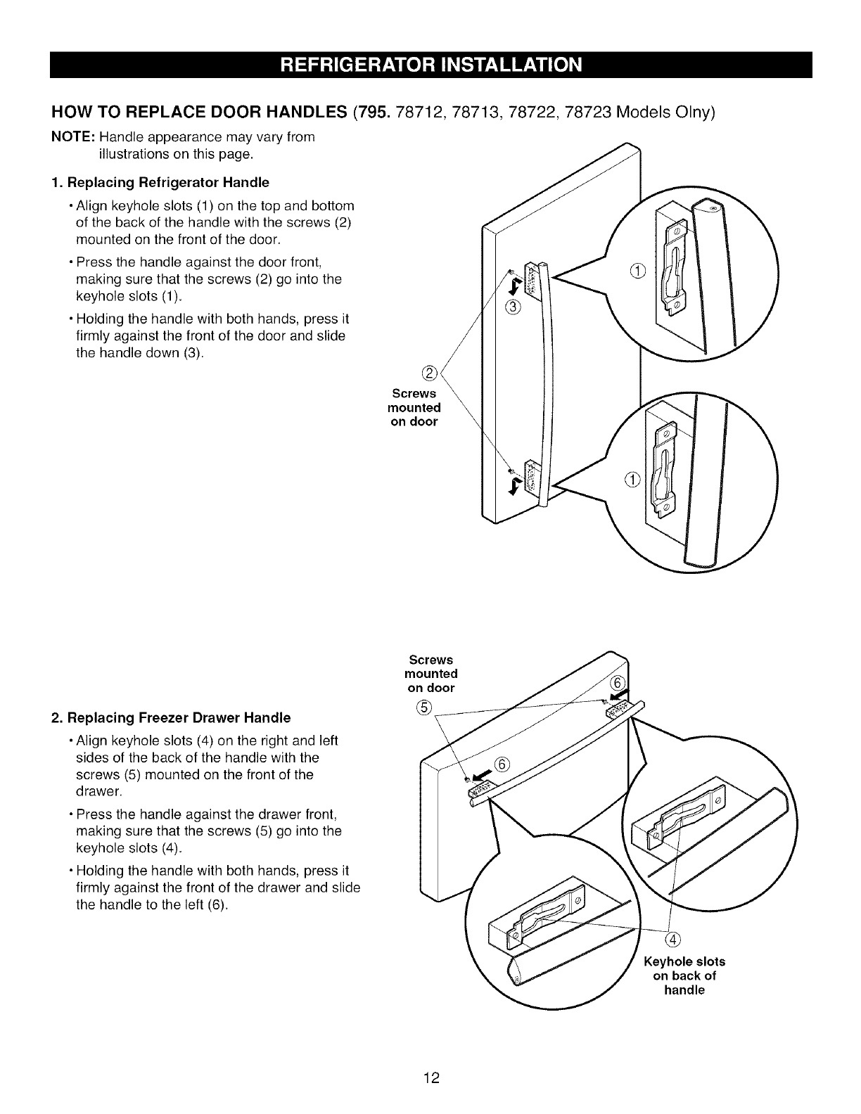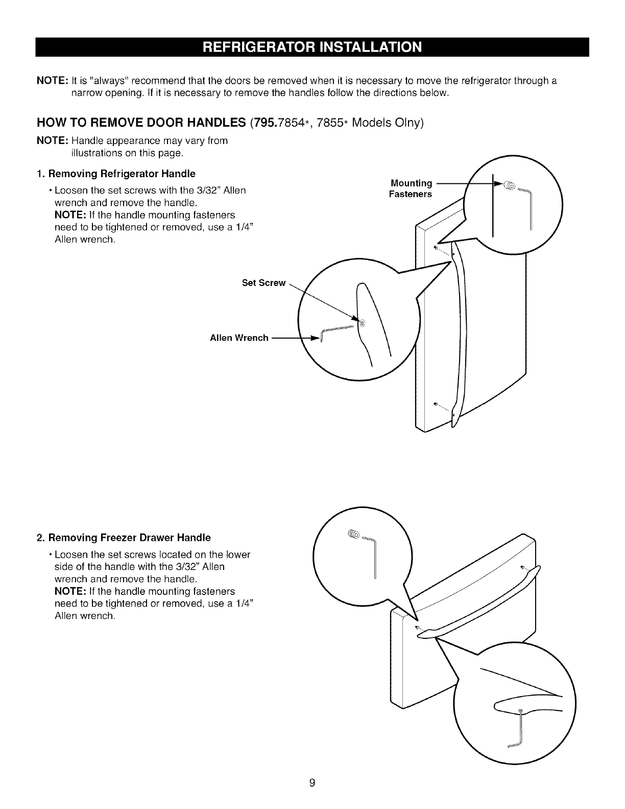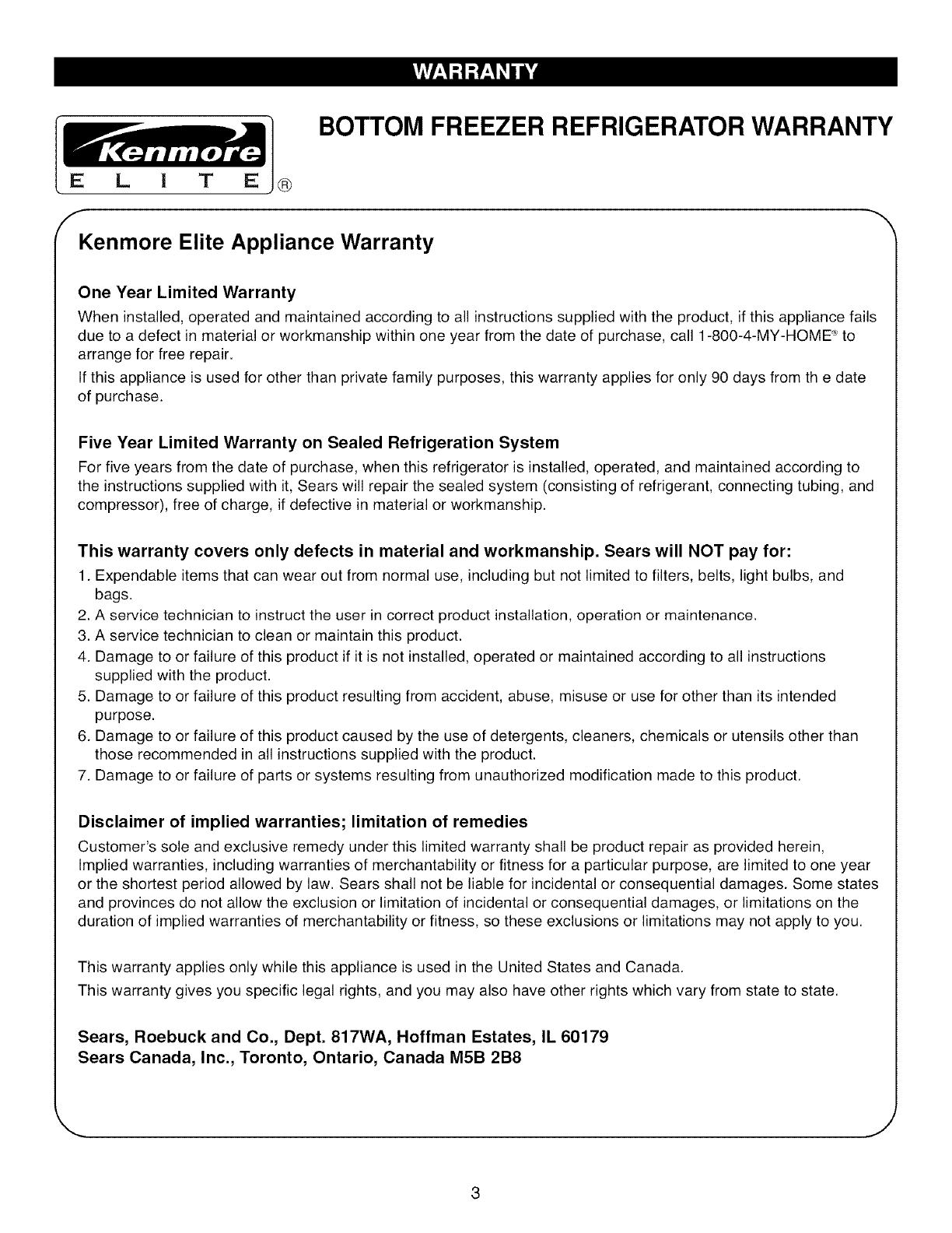 KENMORE ELITE Bottom Mount Refrigerator Manual L0804385 KENMORE ELITE Bottom Mount Refrigerator Owner's Manual, KENMORE ELITE Bottom Mount Refrigerator installation guides