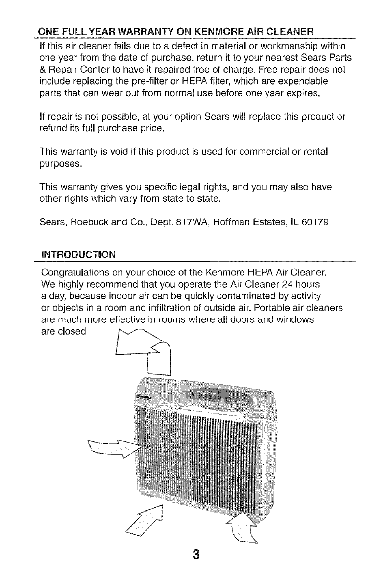 Congratulations on your choice of the Kenmore HEPA Air Cleaner.