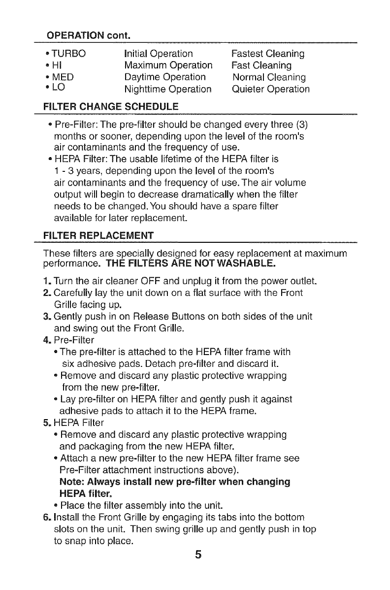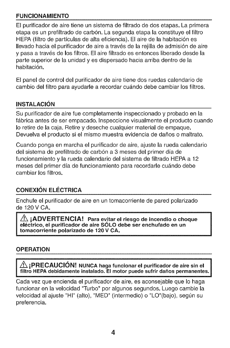 3. NO intente limpiar el filtro de carb6n o el filtro HEPA. Los mismos NO