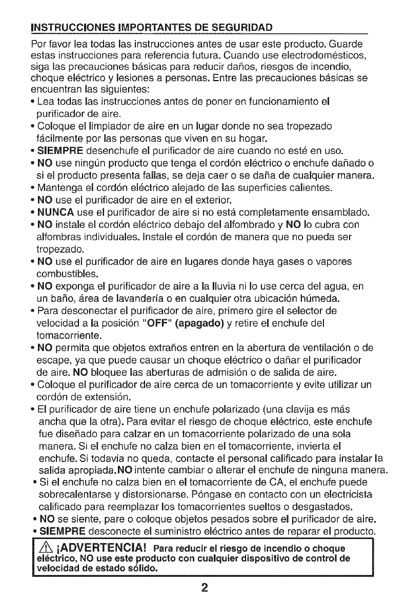 SIEMPRE APAGUE ydesenchufe el purificador de aire ANTES de |a