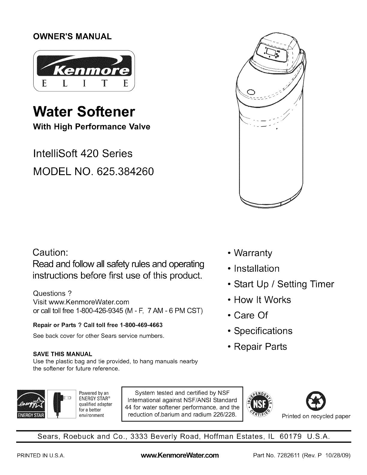 PRINTED IN U.S.A. www.KenmoreWater.com Part No. 7282611 (Rev. P 10/28/09)