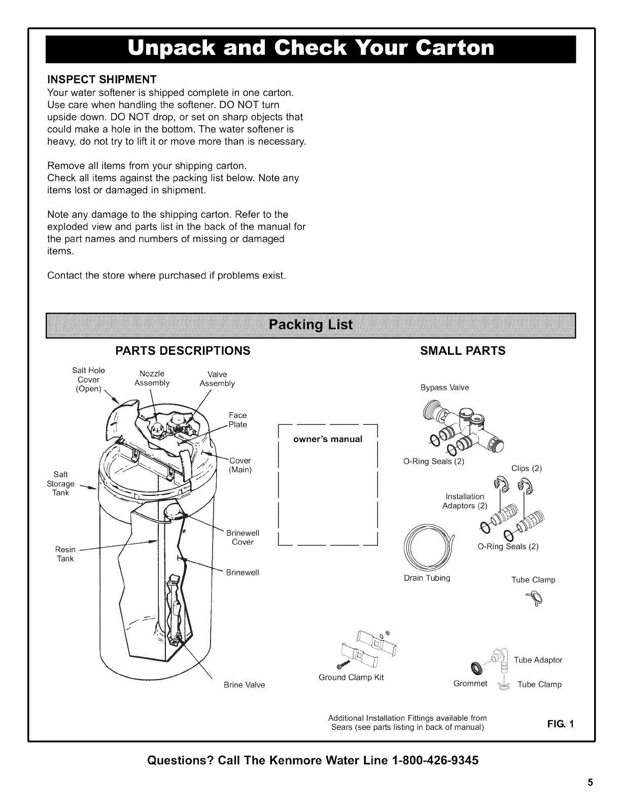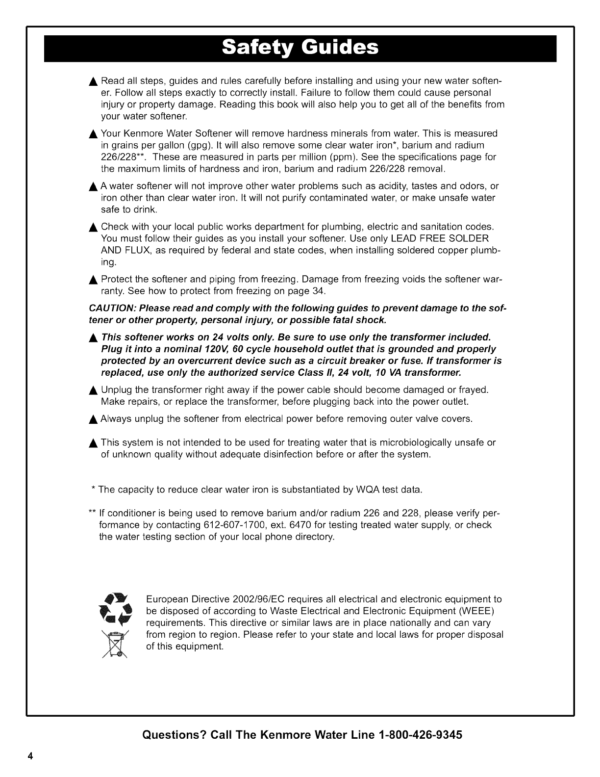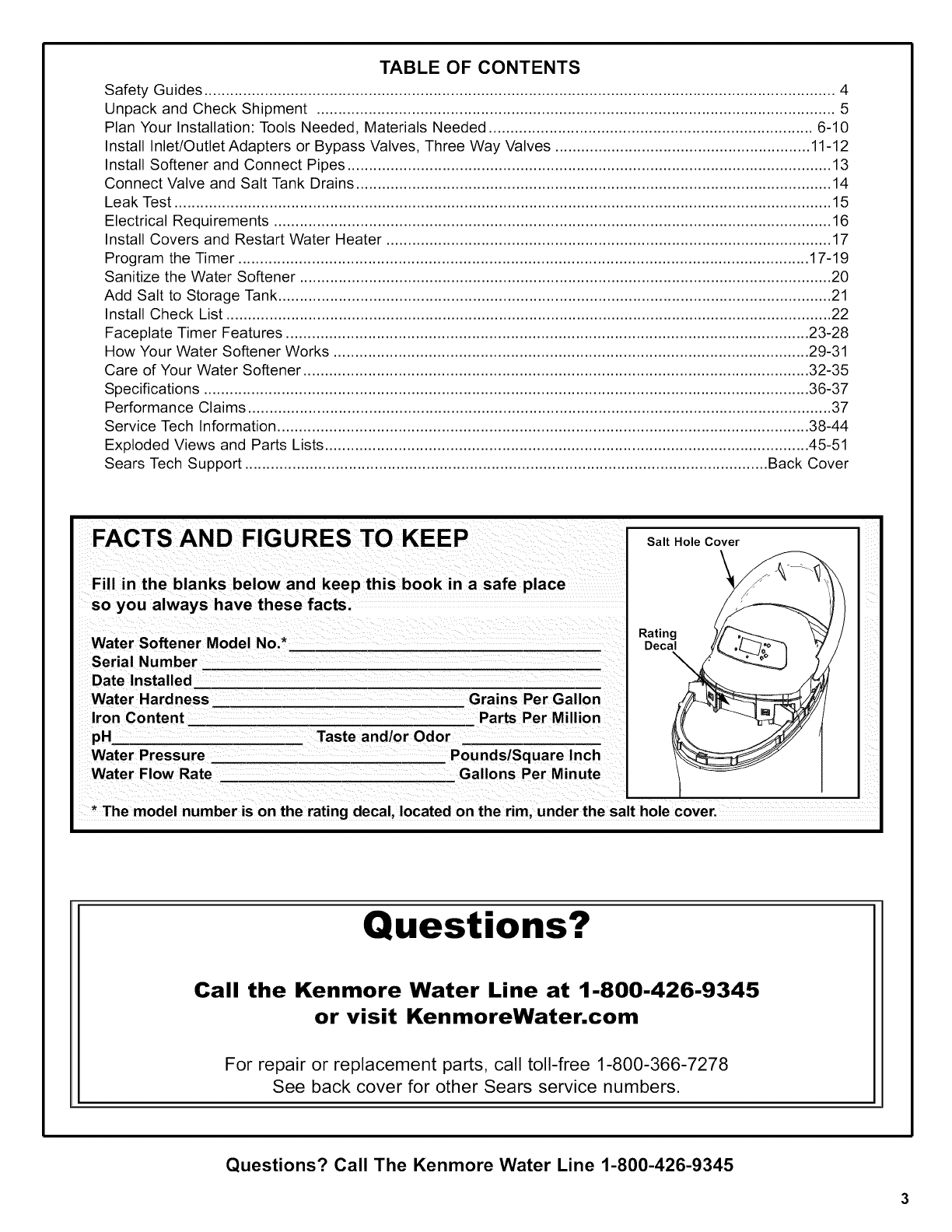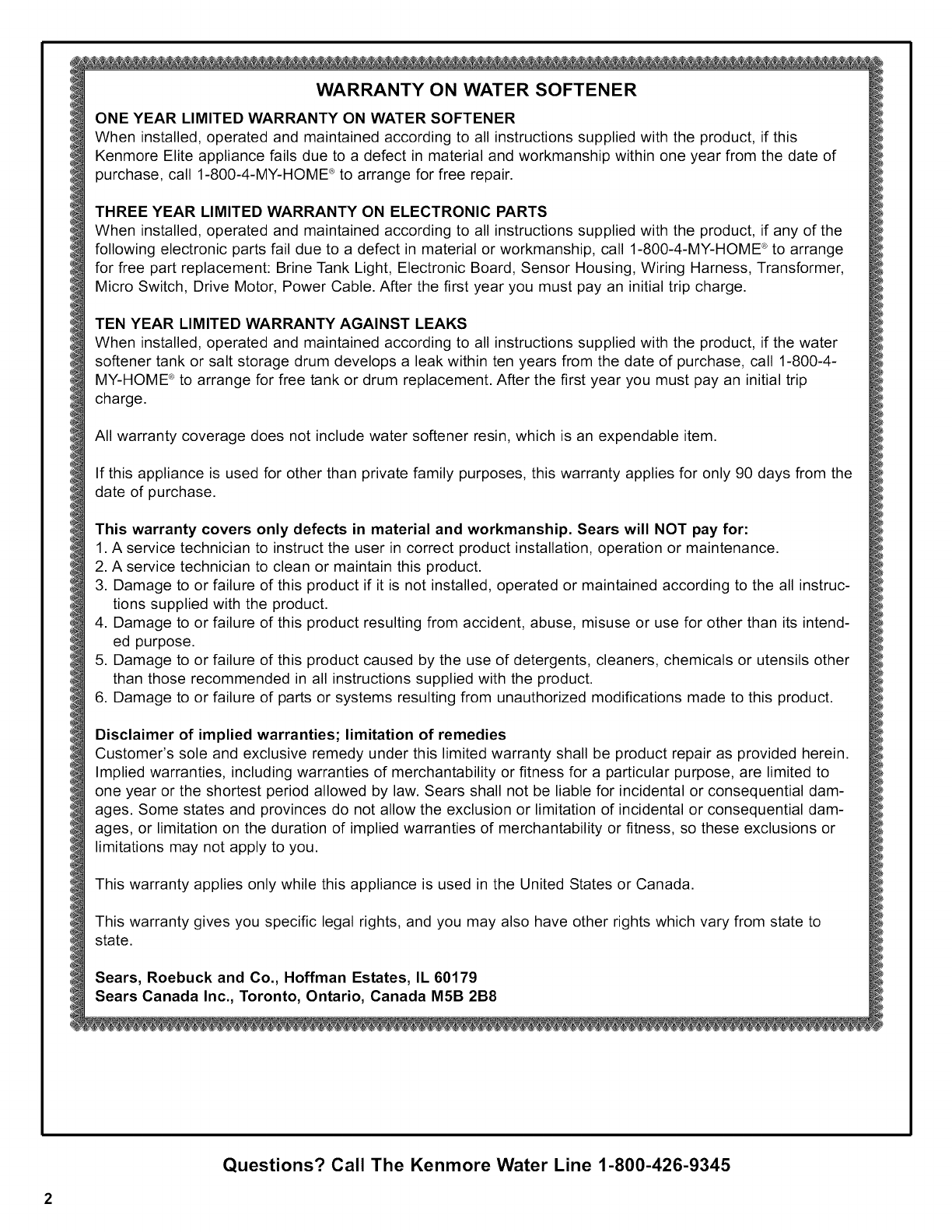 Questions? Call The Kenmore Water Line 1-800-426-9345
