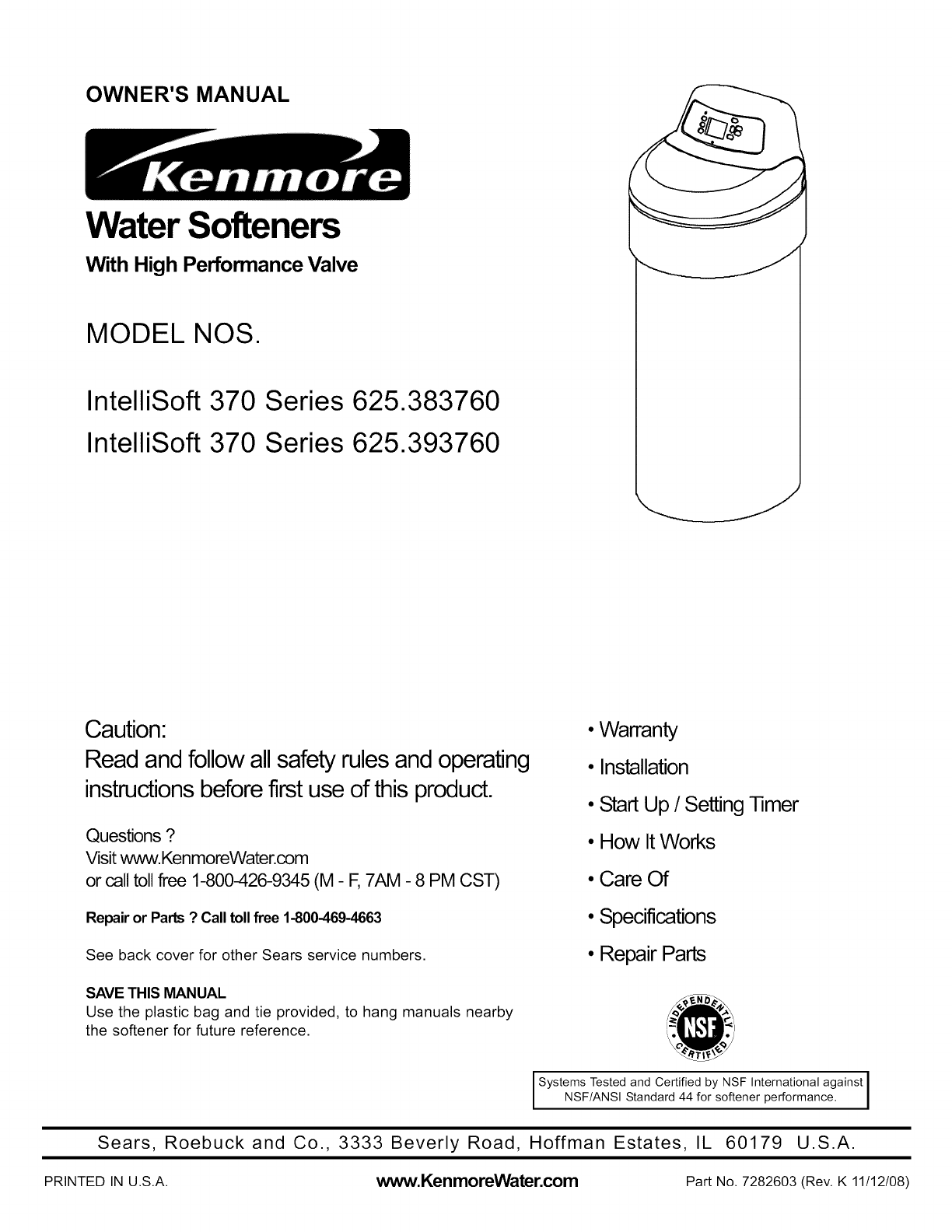 Part No. 7282603 (Rev. K 11/12/08)