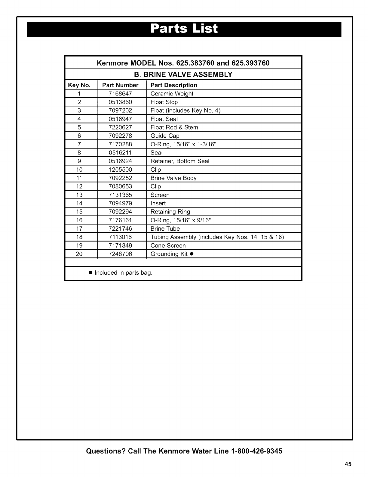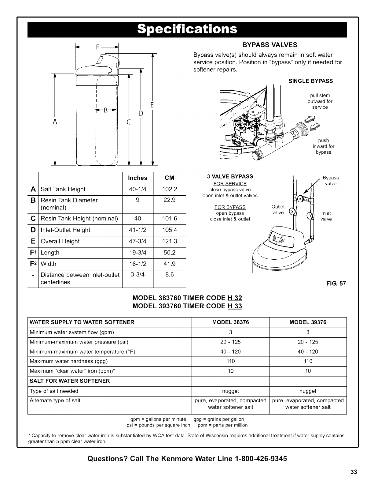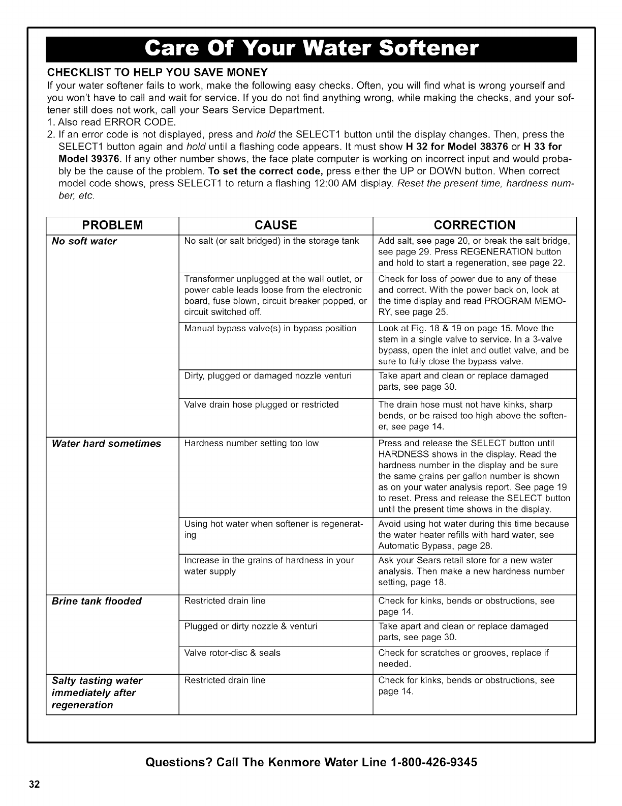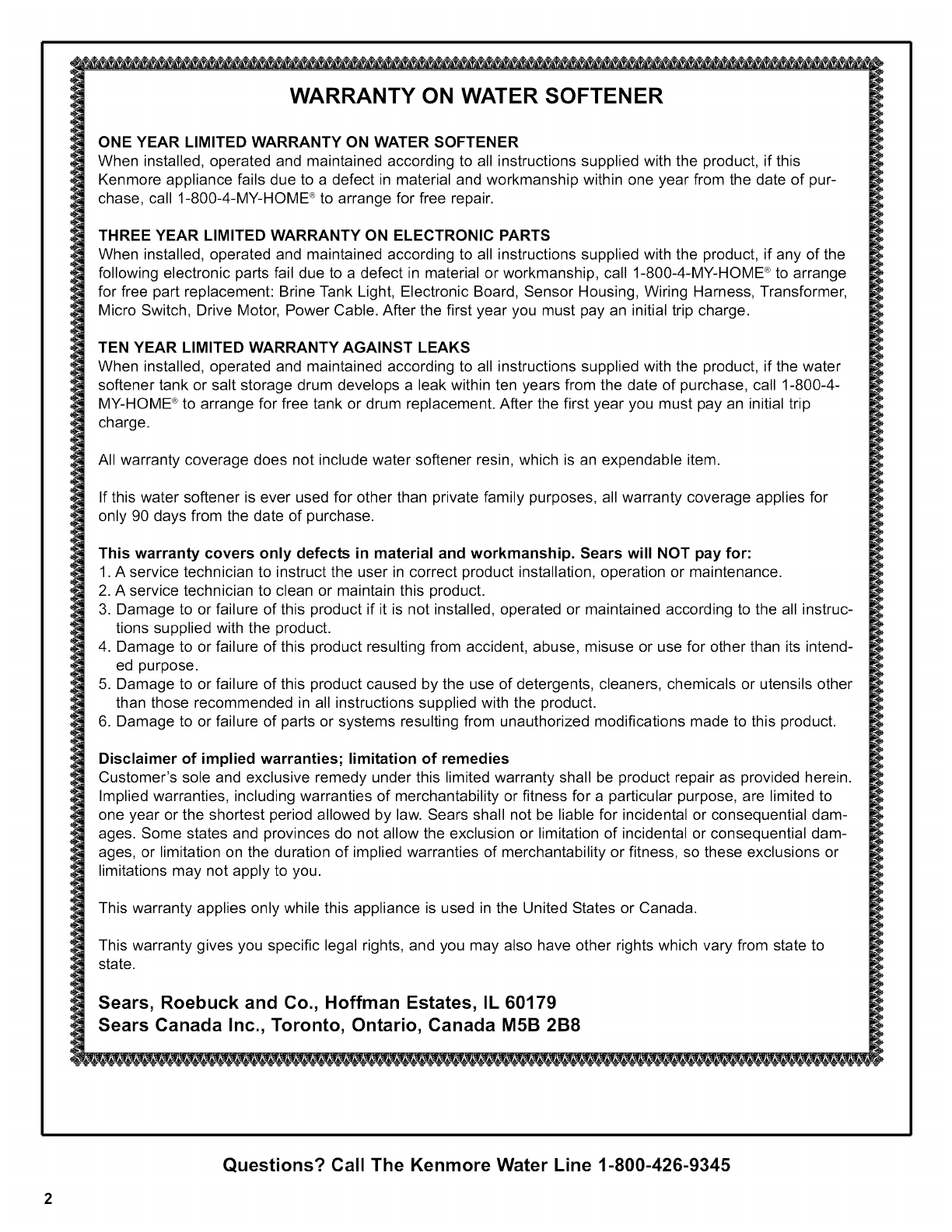 Questions? Call The Kenmore Water Line 1-800-426-9345