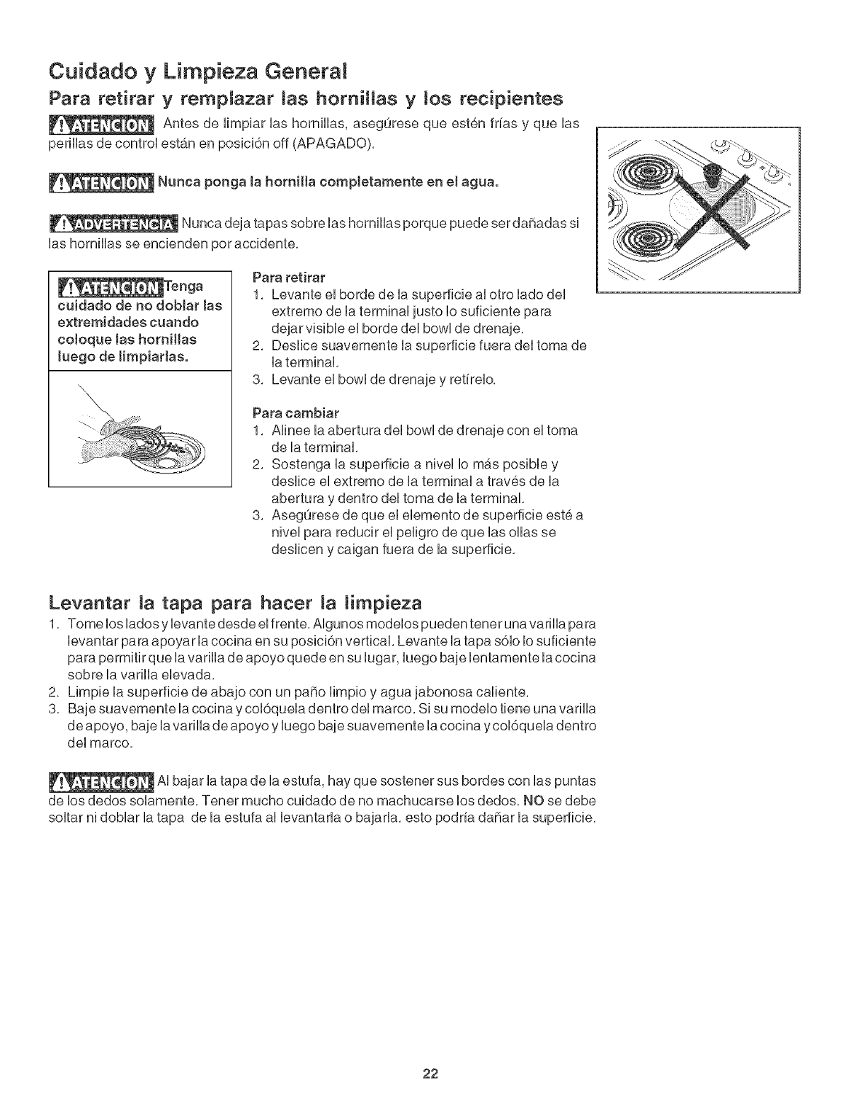 soltar ni doblar la tapa de la estufa al levantarla o bajarla, esto podria daSar la superficie,