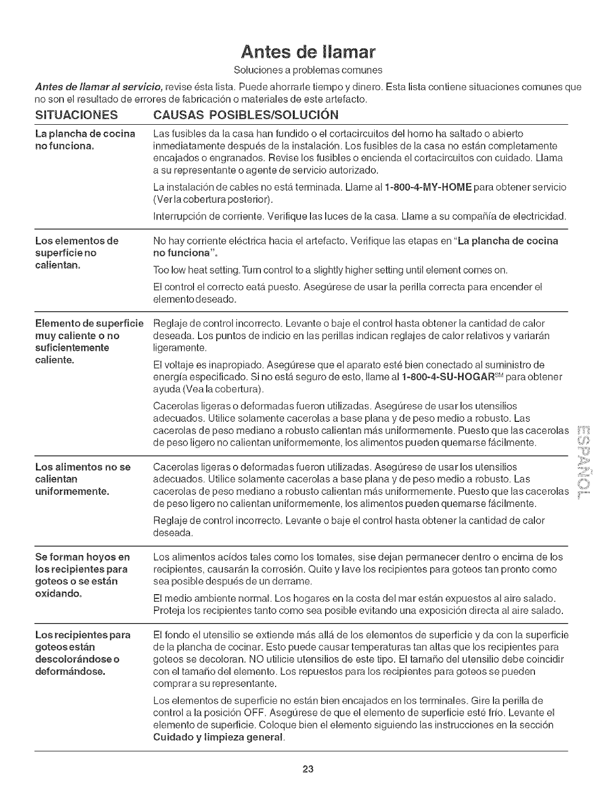 energia especificado, Si no est,. seguro de esto, llame al 1-800-4-SU-HOGAR sMpara obtener
