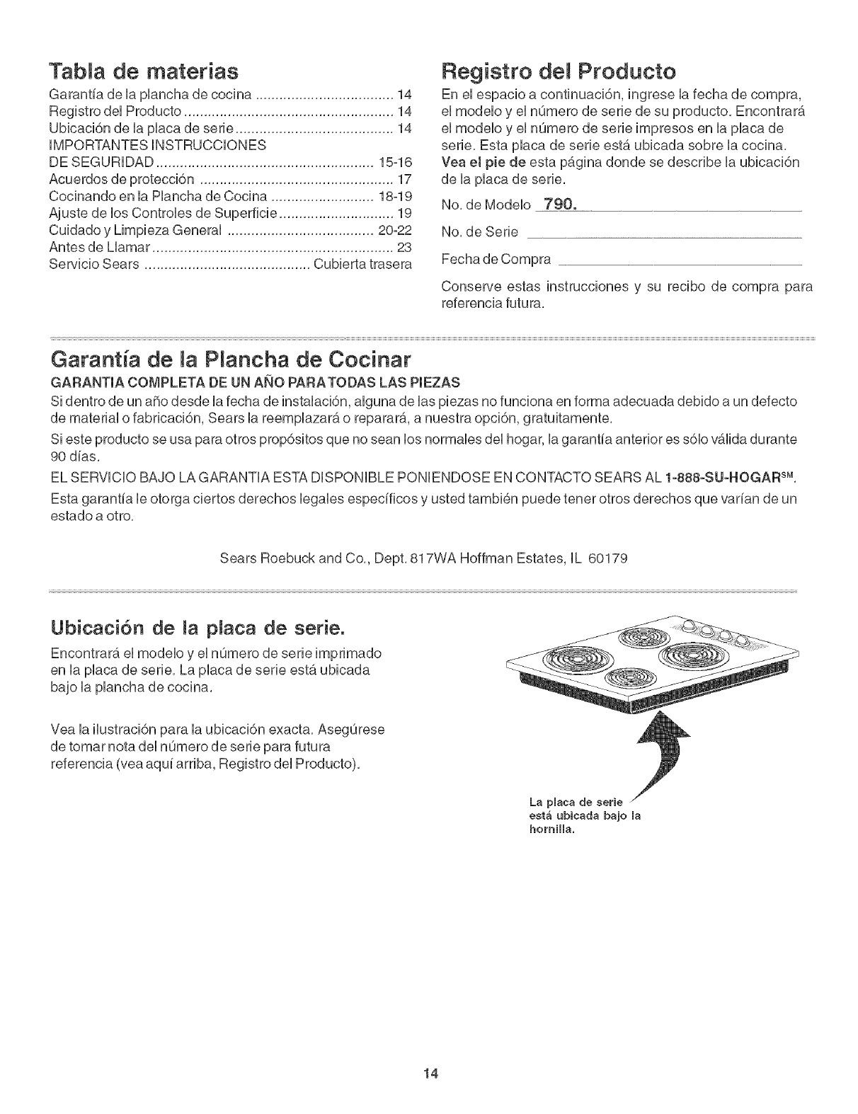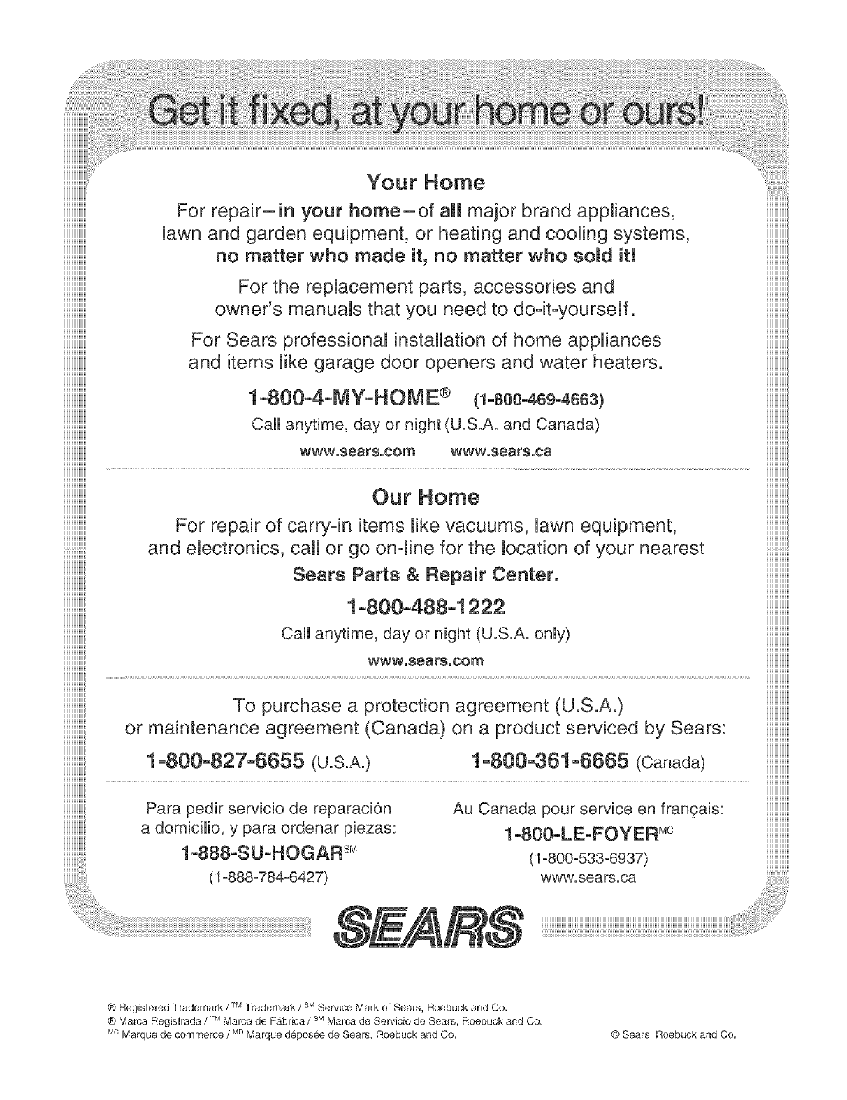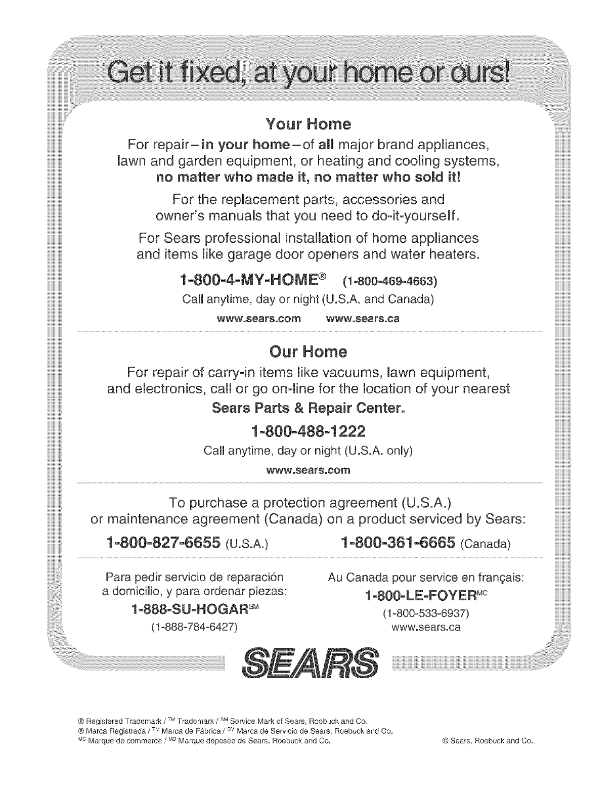 ® Marca Registrada /"rMMarca de Fabdca /SM Marca de Servicio de Sears, Roebuck and Co.