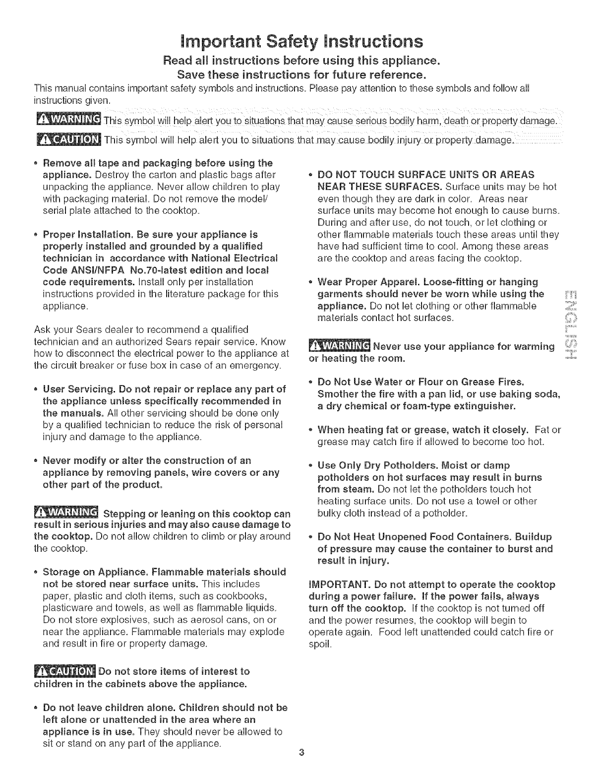 the cooktop. Do not allow children to climb or play around