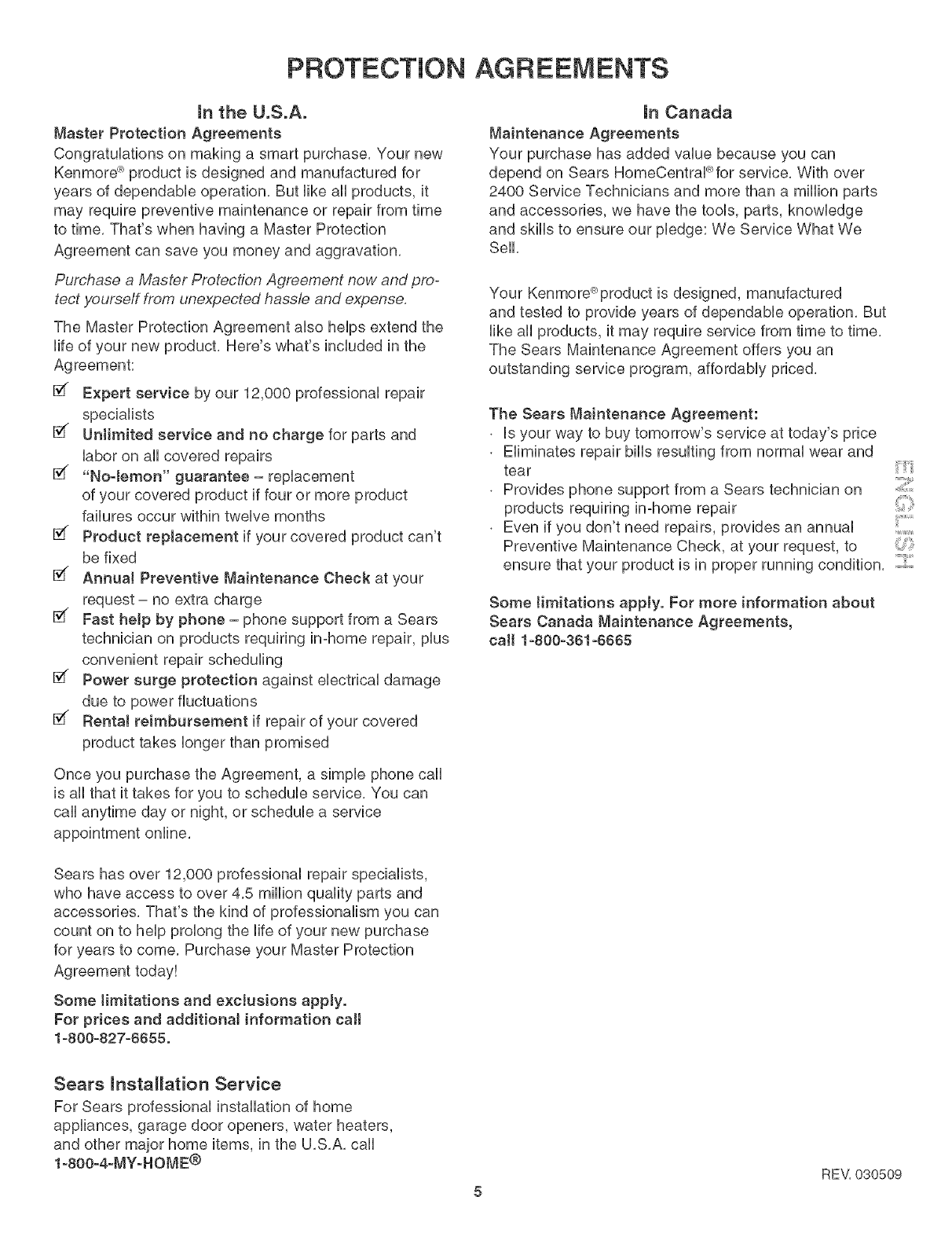 Sears Service ................................................................. 12