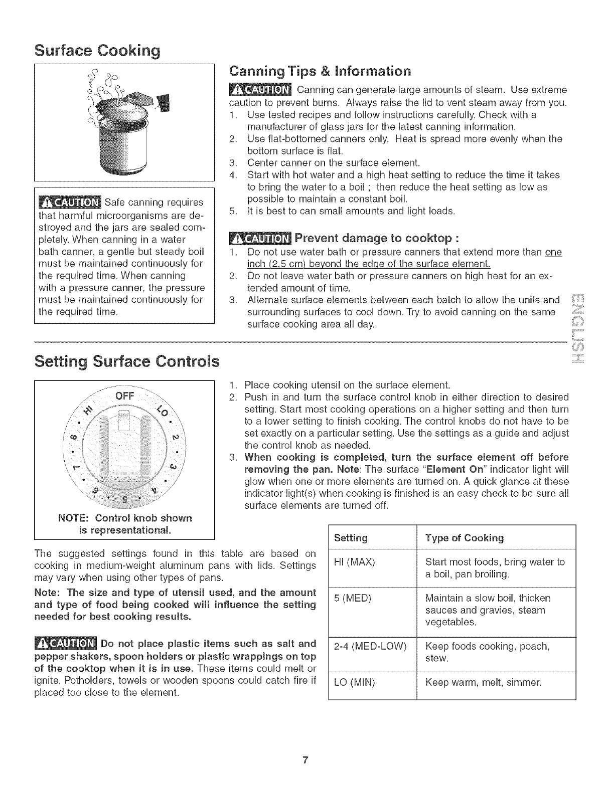 Surface Cooking ............................................................ 6-7