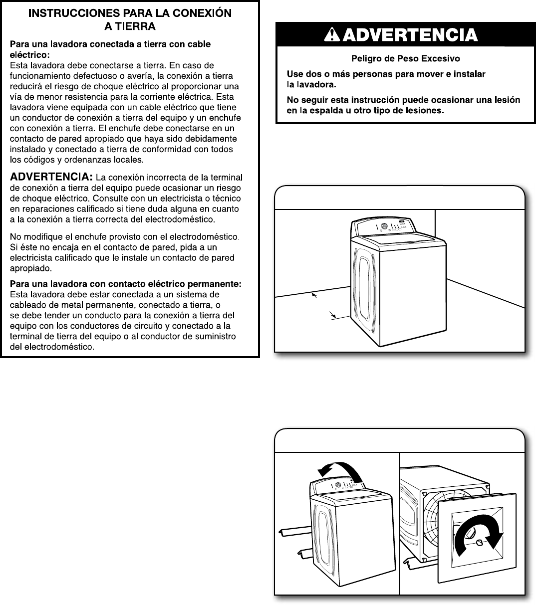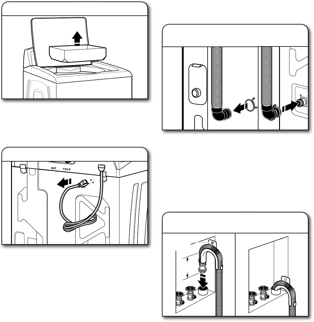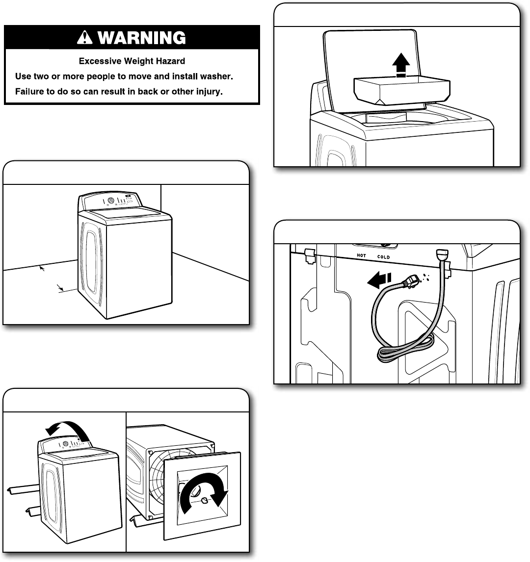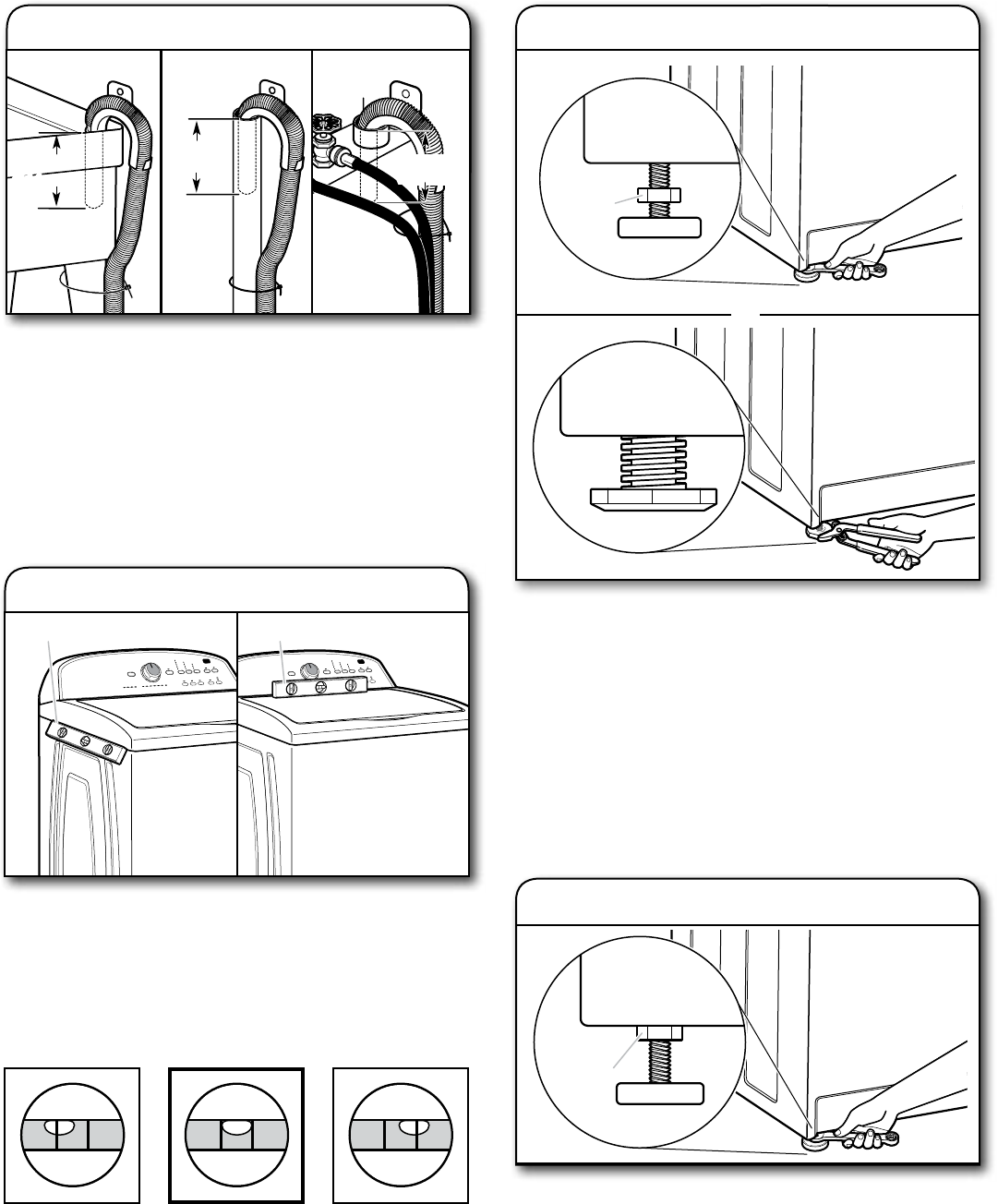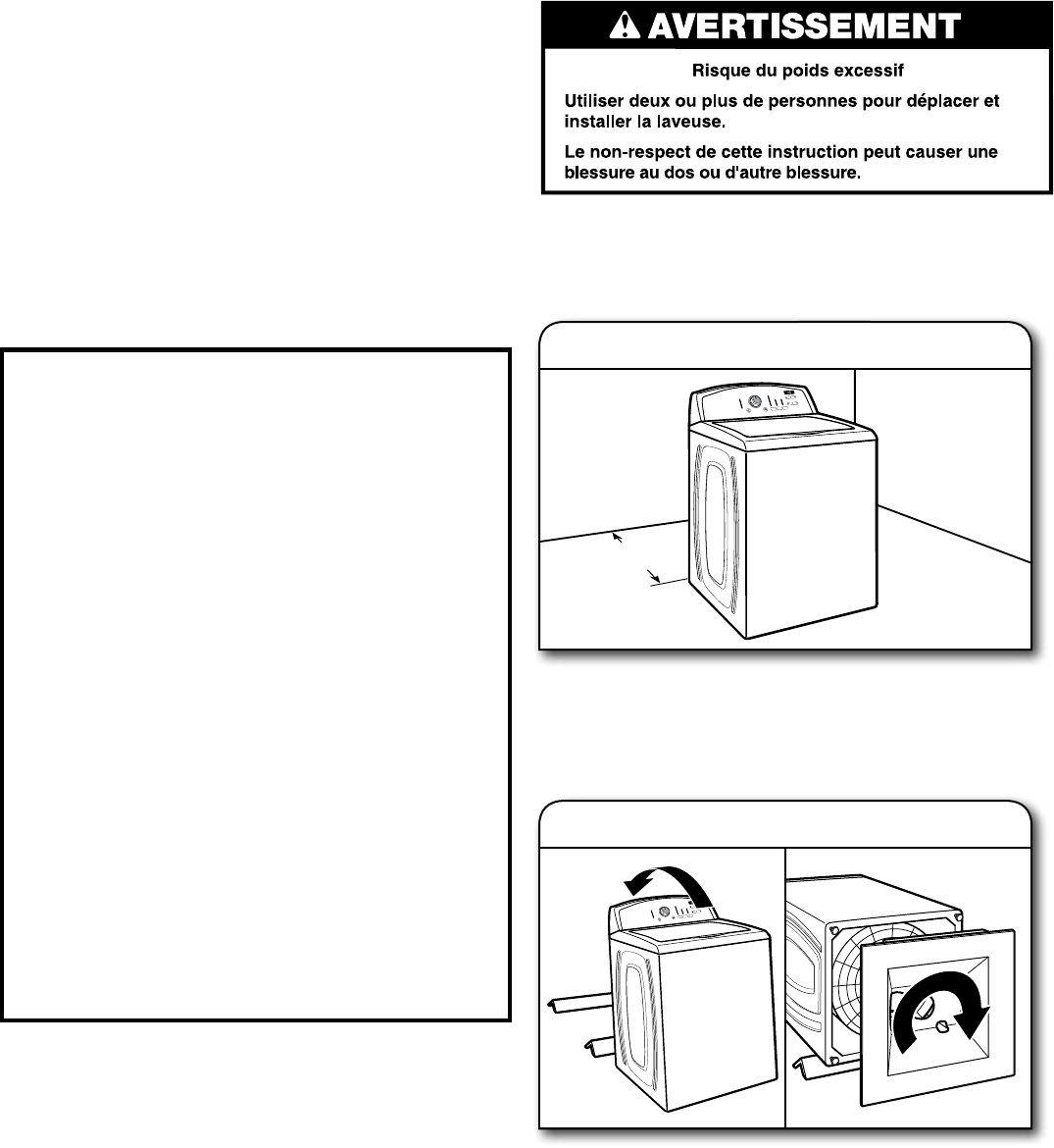 trouvent à environ 1/2" (13 mm) de la caisse de la laveuse.